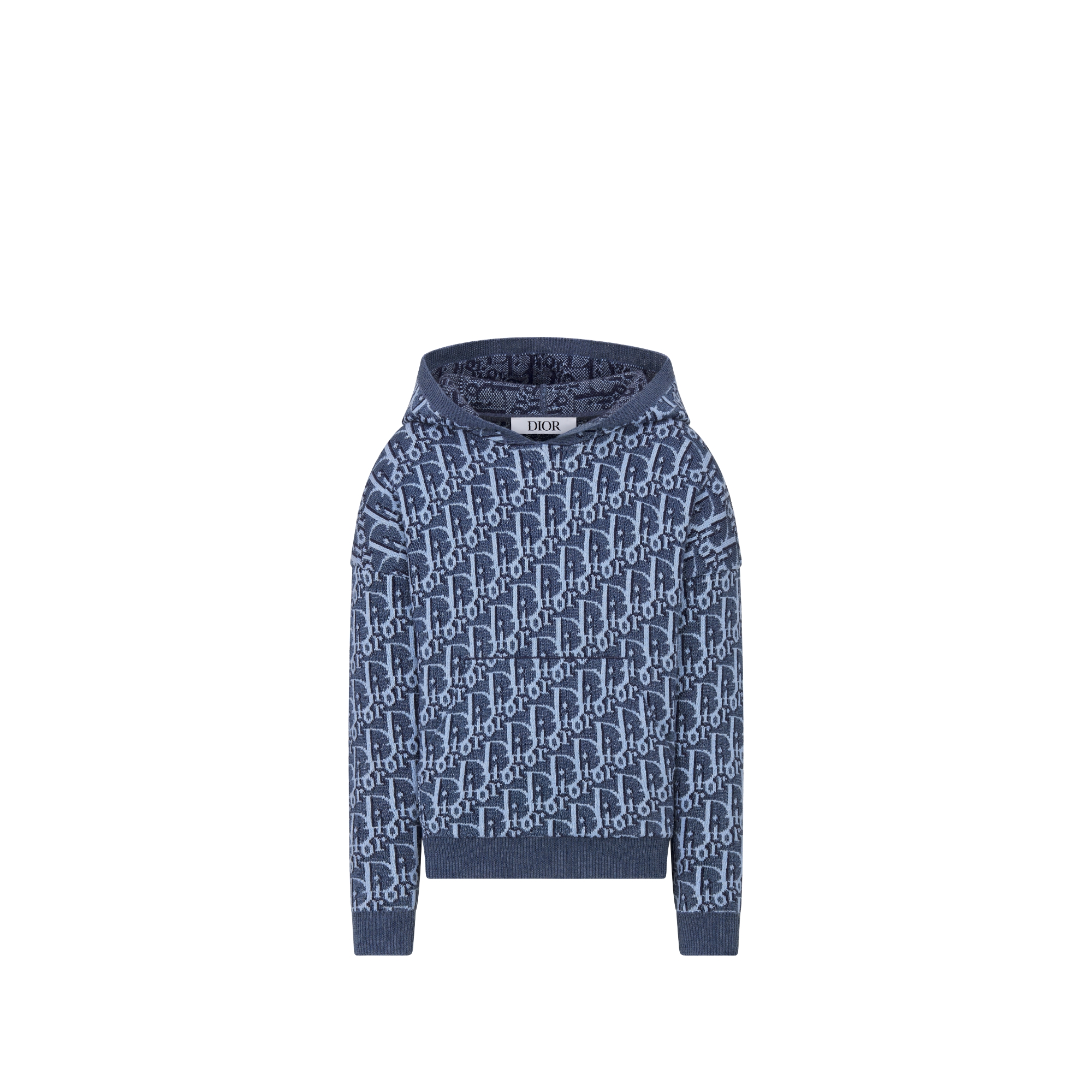 水蓝色棉质混纺针织面料搭配蓝色 Oblique 印花面料