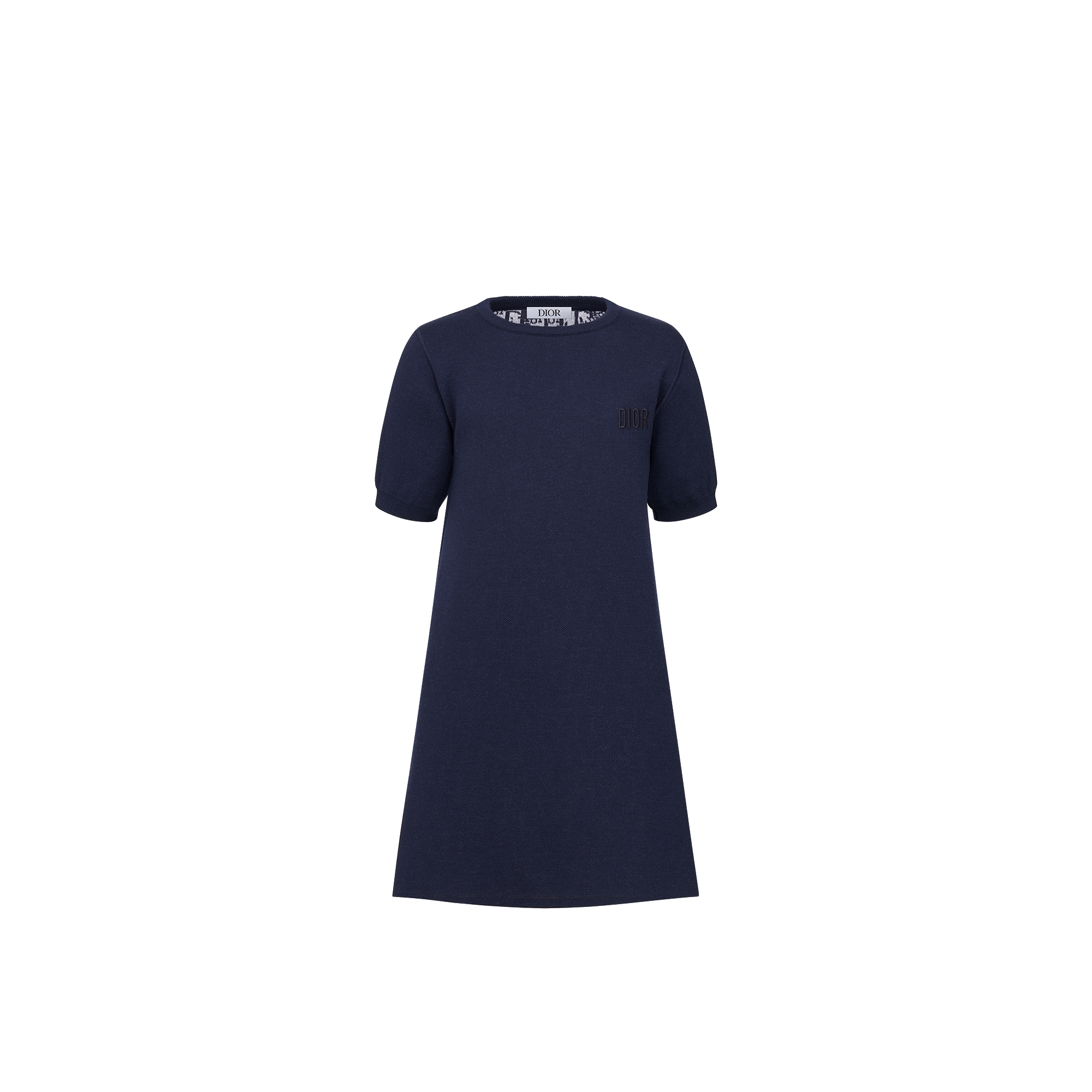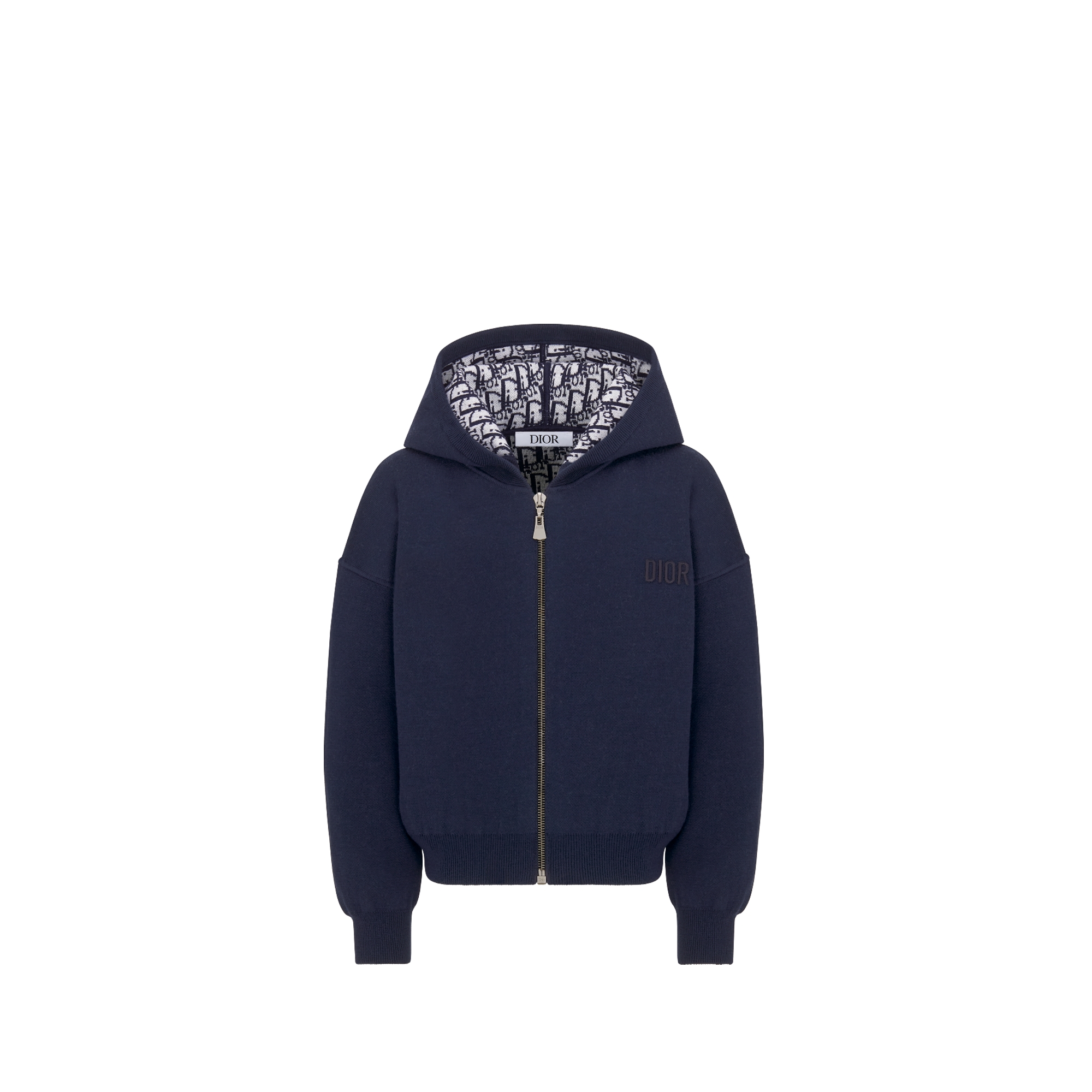 海军蓝色绵羊毛针织面料象牙色和蓝色 Oblique 印花