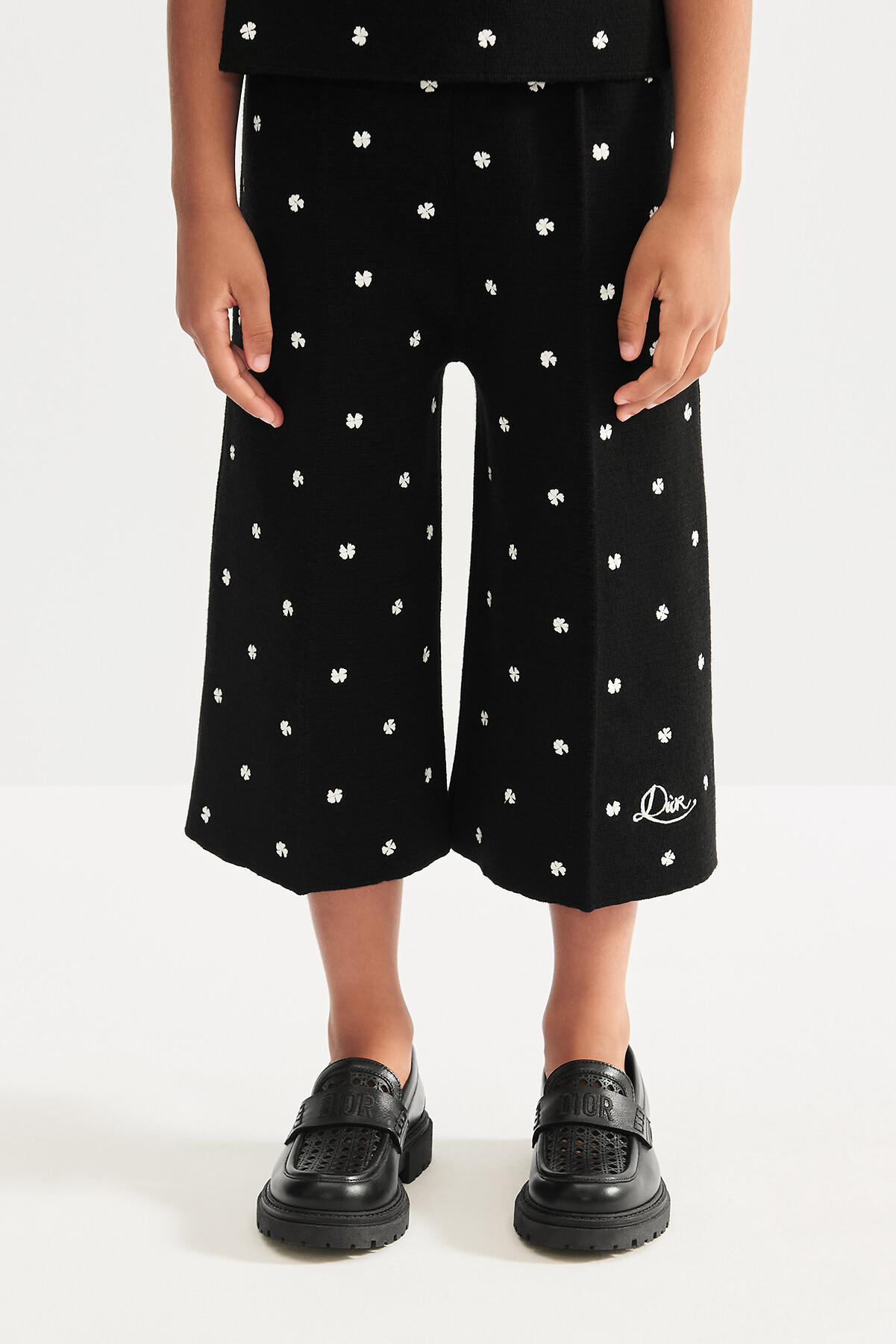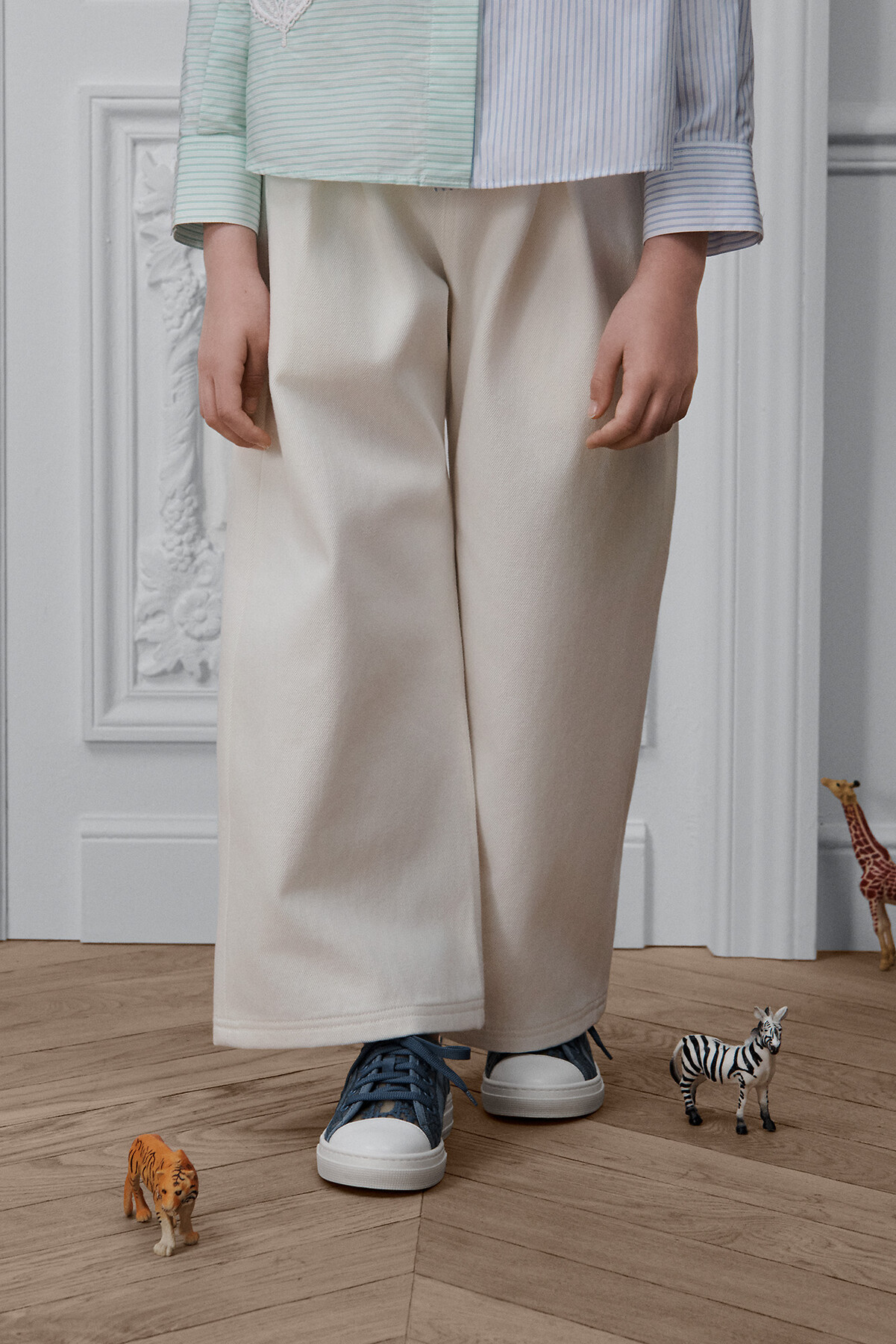 探索由科迪莉娅·德卡斯特兰 (CORDELIA DE CASTELLANE) 为女童特别设计的 BABY DIOR 长裤和短裤,体验舒适飘逸的质感。