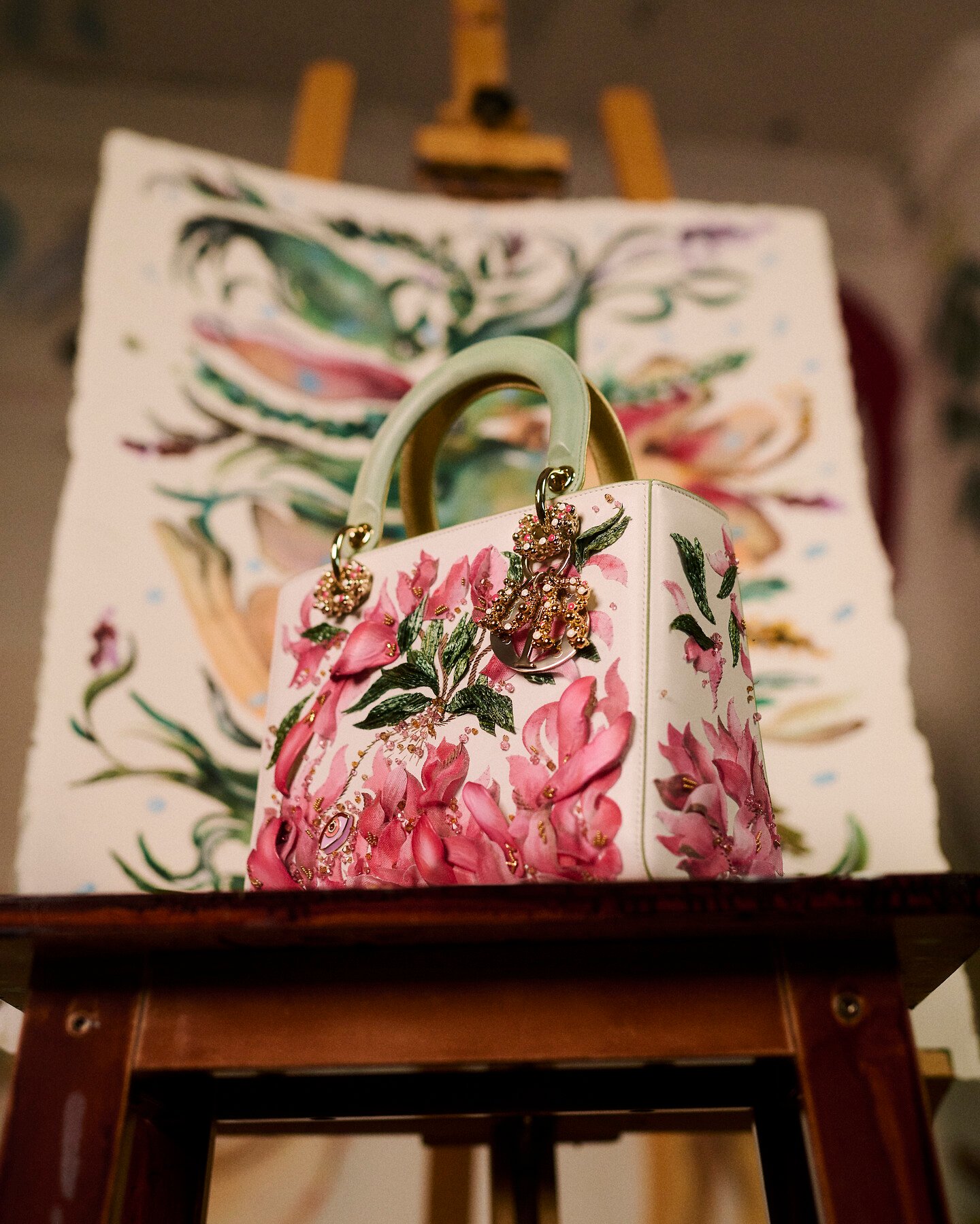 索菲亚·勒布 (SOPHIA LOEB) 的抽象画作从沉浸在大自然中的感觉汲取灵感,无论在物质上还是精神上,提倡人类与自然世界和谐共存。她的作品运用富有表现力的笔触展现宁静的时刻,通过直观的动作来实现,将观众带入神圣的仪式,一起回忆无人涉足的原始地球。她为 DIOR LADY ART 艺术家合作项目第十年度倾情呈献了四款 LADY DIOR 手袋,以互相交织的迷人纹理展现其独特审美的全貌,精致非凡。
