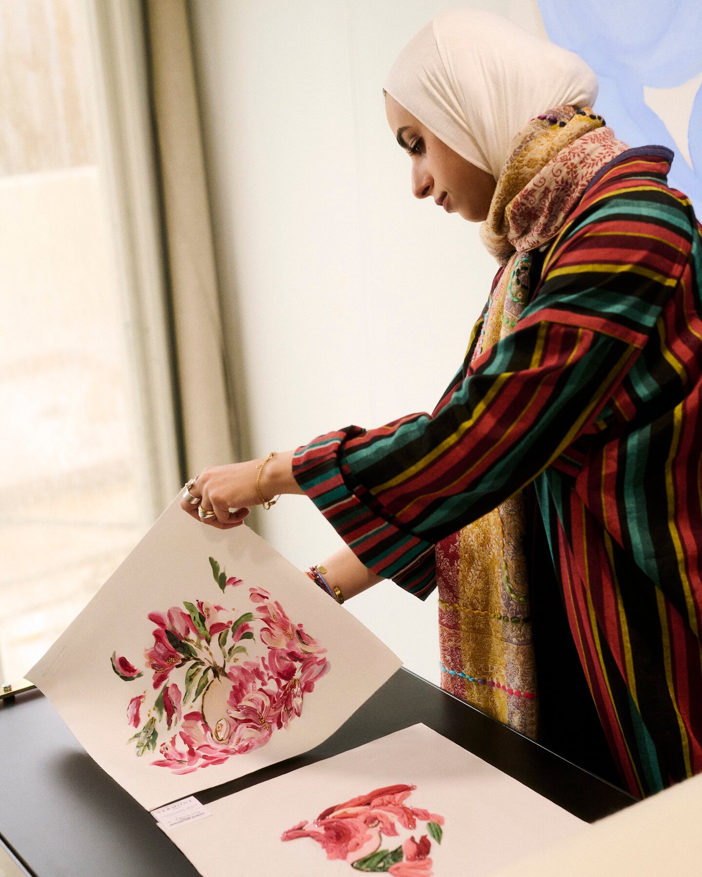 阿利玛玛·拉希德 (ALYMAMAH RASHED) 出生于科威特,透过其自身存在的历史探索身份、气候和自然等主题。她的作品充满超现实主义色彩,从女性身份、精神智慧以及像根一样将她与世界连接的科威特底蕴特质等角度审视社会变迁,在此过程中与日常物件展开亲密对话。在第十年度的 DIOR LADY ART 艺术家合作项目中,她基于自身的愿景、宇宙以及与环境的关系进行创作。