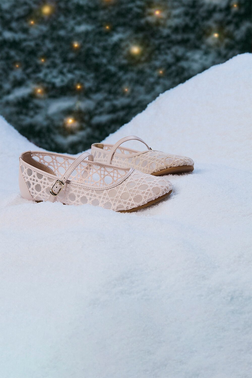 象牙色薄纱淡粉色藤格纹刺绣和牛皮革