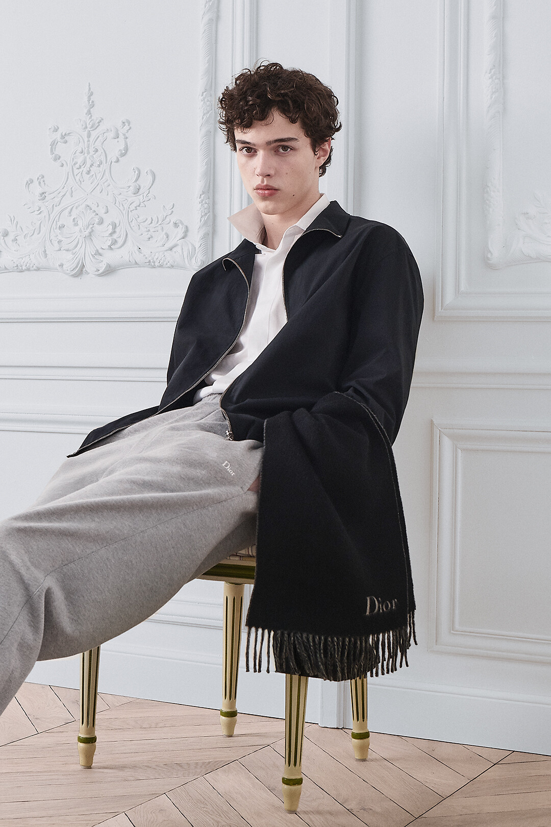 黑色和灰色绵羊毛和山羊绒混纺面料 Dior 标志