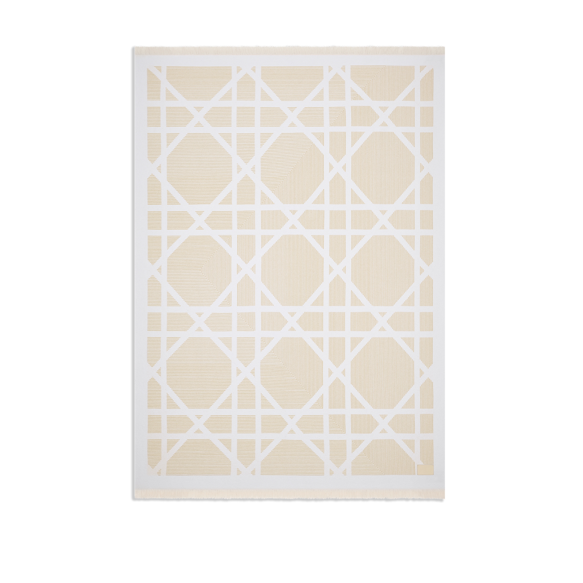 米色和白色绵羊毛混纺提花面料 Optique 藤格纹