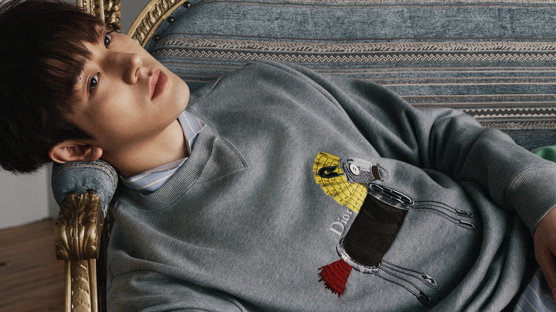 黑色和灰色绵羊毛和山羊绒混纺面料 Dior 标志
