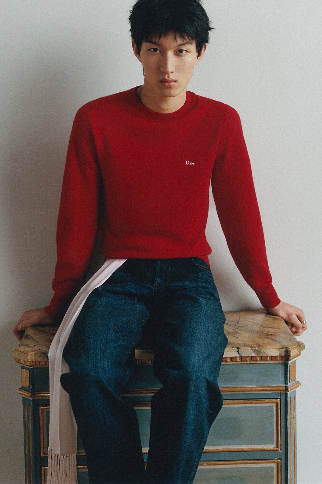 红色山羊绒平纹针织面料 Dior 刺绣