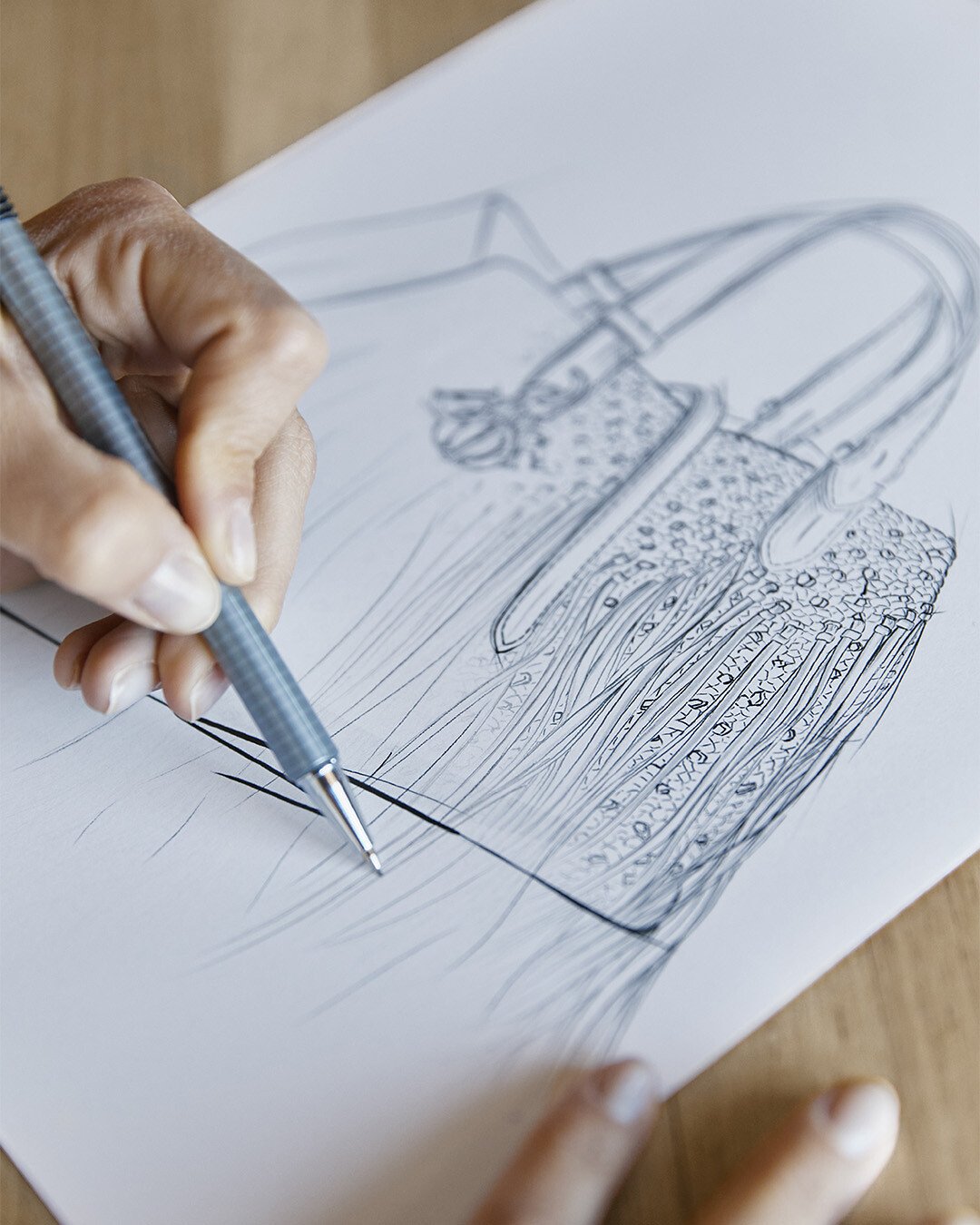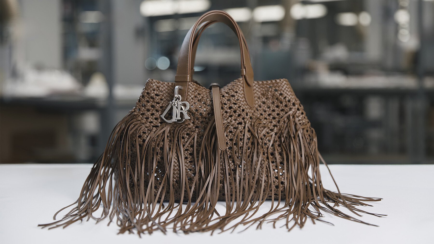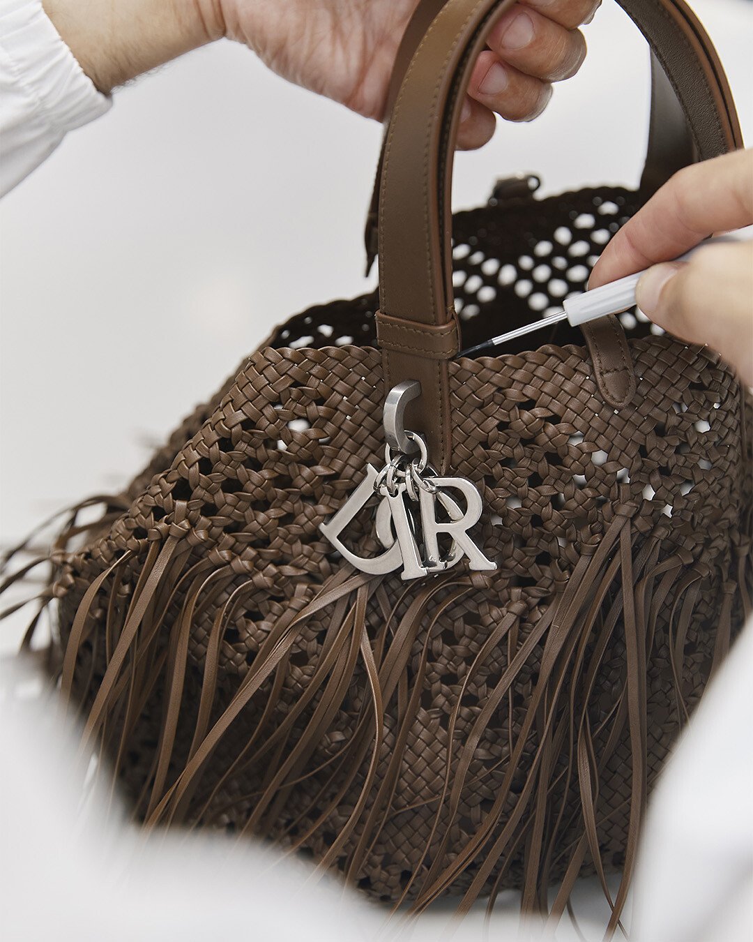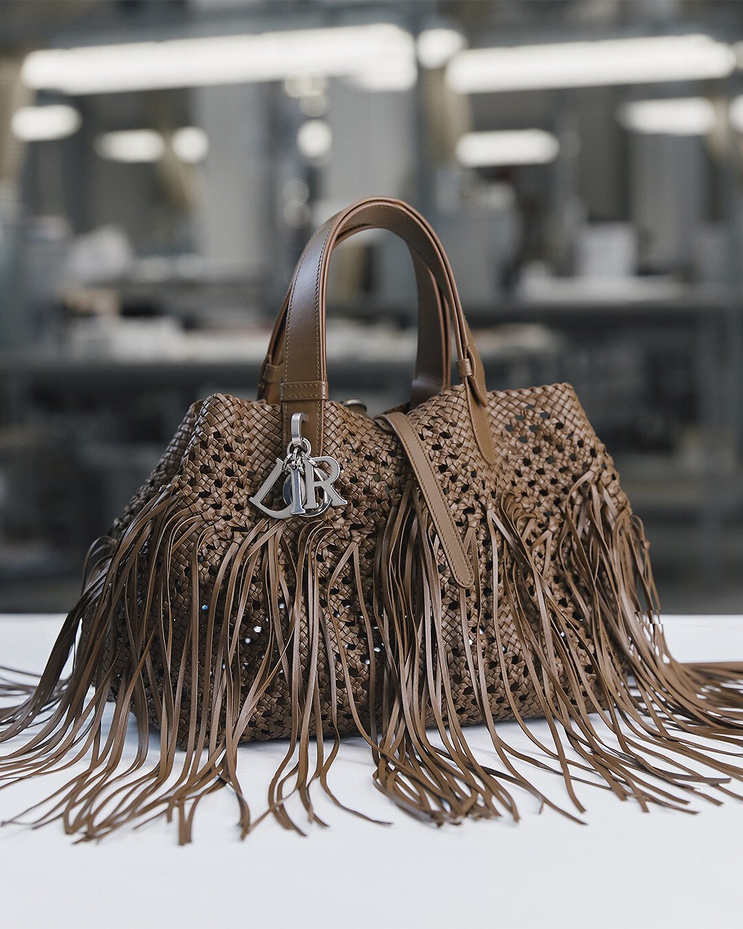 DIOR TOUJOURS INTRECCIO 流苏手袋由玛丽亚·嘉茜娅·蔻丽 (MARIA GRAZIA CHIURI) 倾情设计,探索波西米亚精神的同时增添西方元素。此原创款式采用编织工艺精制,通体呈现交织图案,故意保留的皮革条带随行而动,散发自由气息。