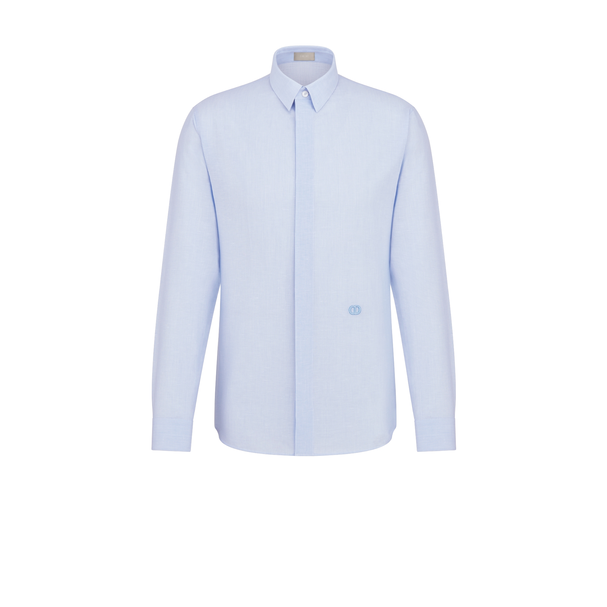 蓝色棉质和亚麻混纺面料 CD Icon 刺绣