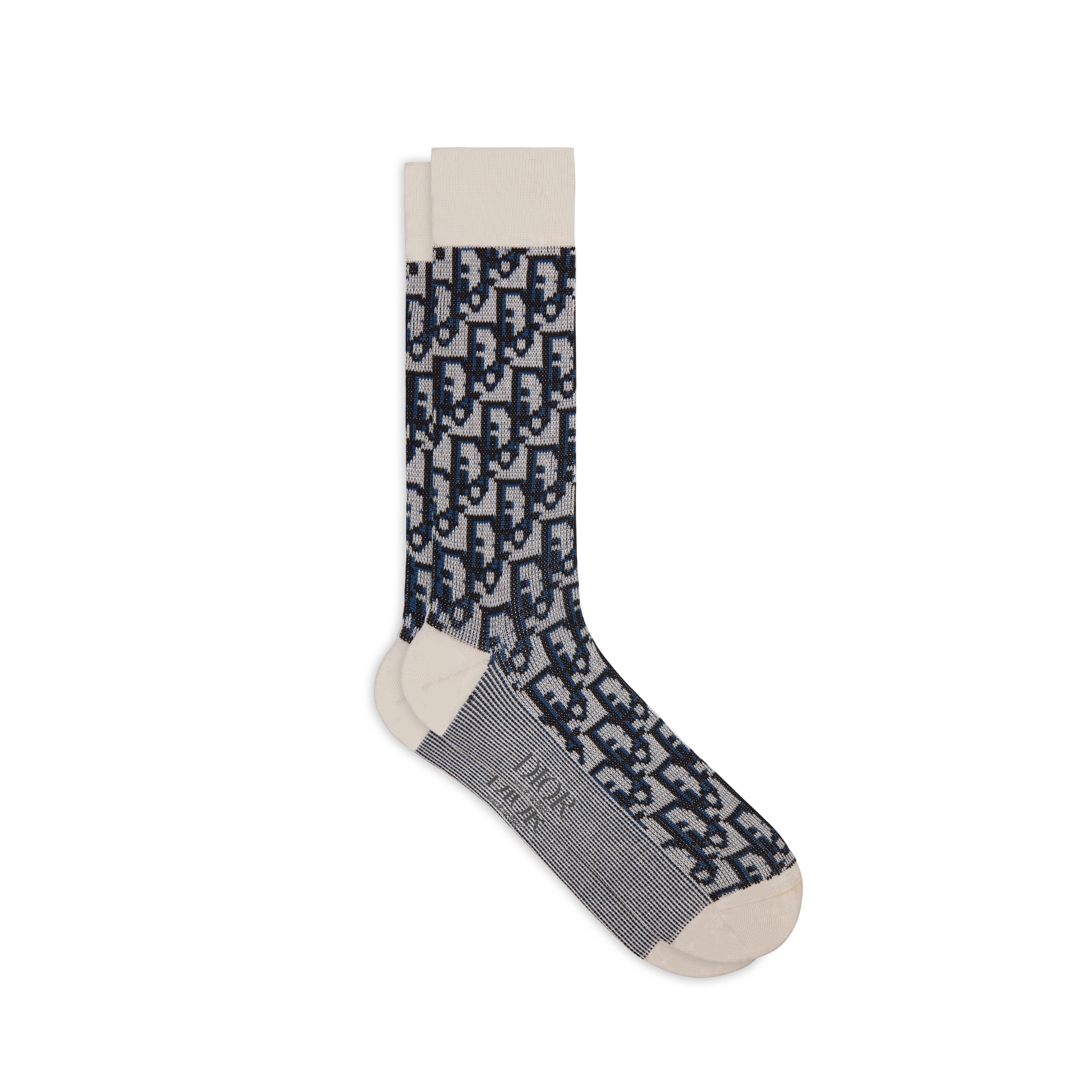 海军蓝色和黑色提花弹性棉质混纺 Oblique 印花