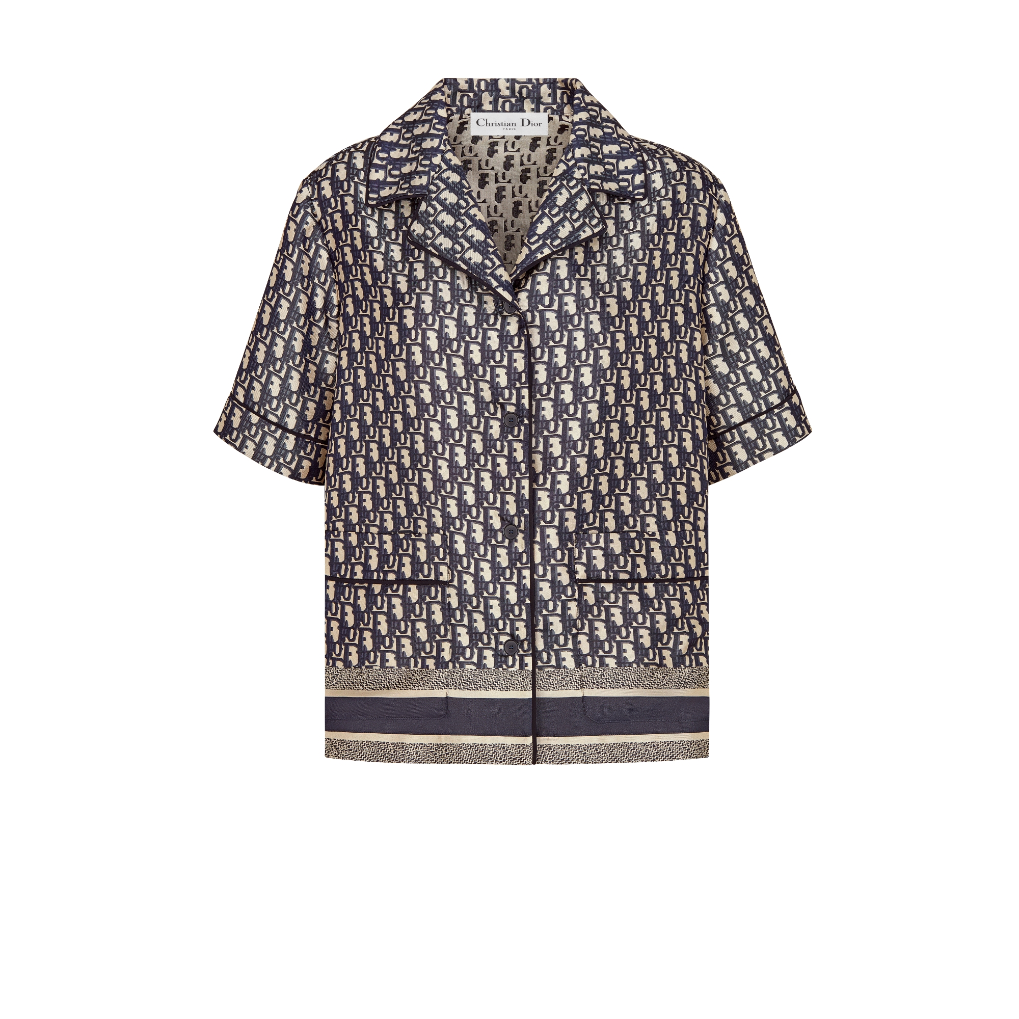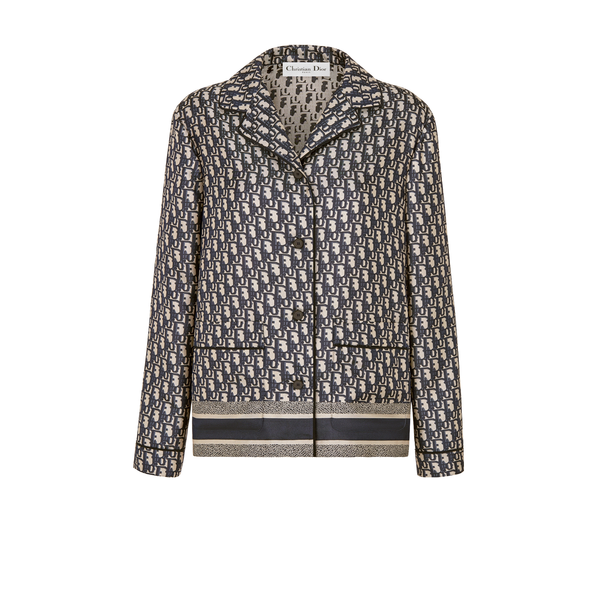 蓝色桑蚕丝斜纹面料 Oblique 印花