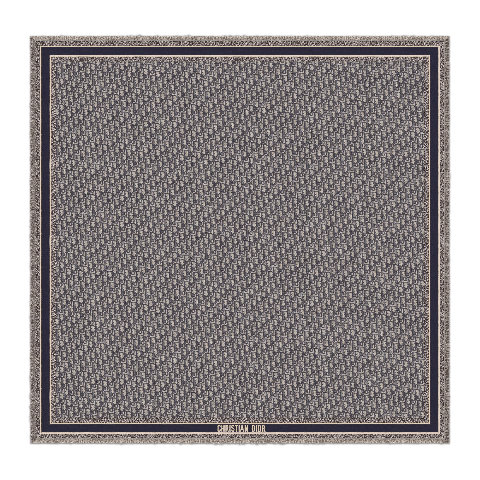 海军蓝色绵羊毛和桑蚕丝混纺面料 Oblique 印花