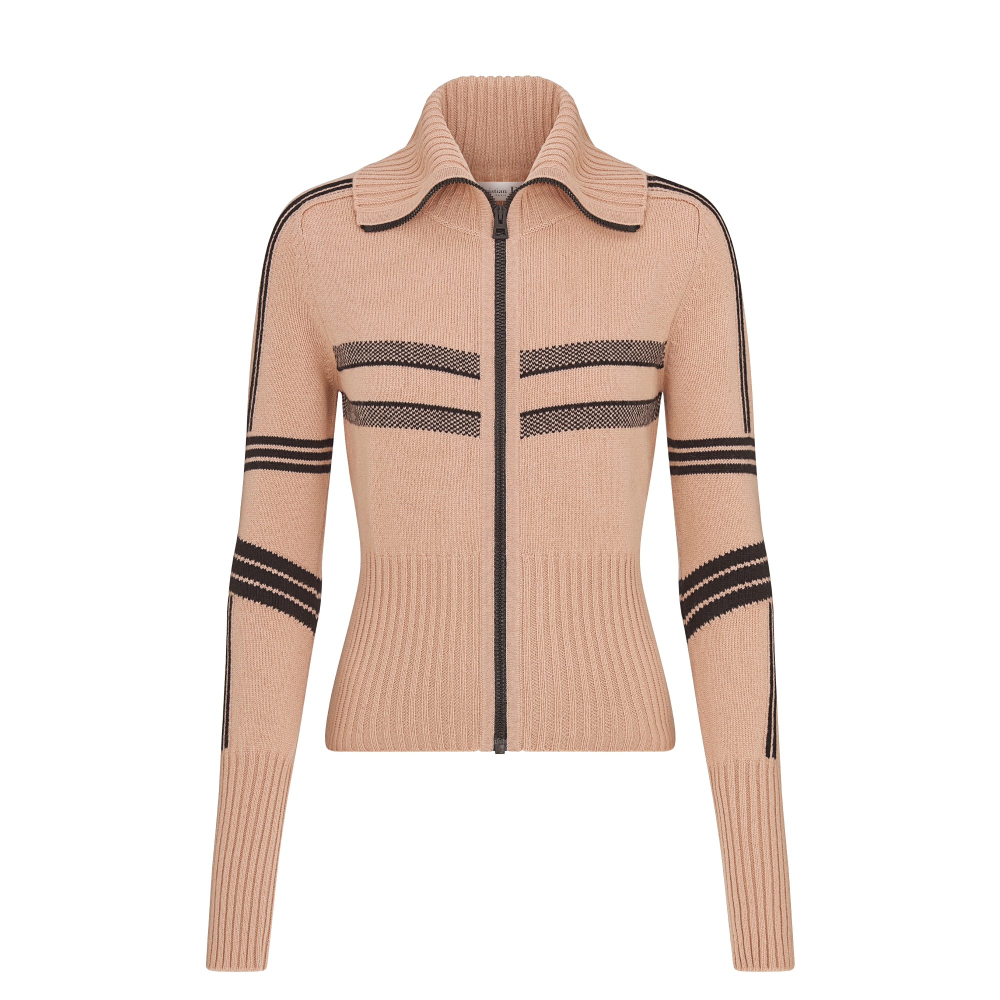 粉色绵羊毛和山羊绒混纺针织面料黑色 Dior Star 图案