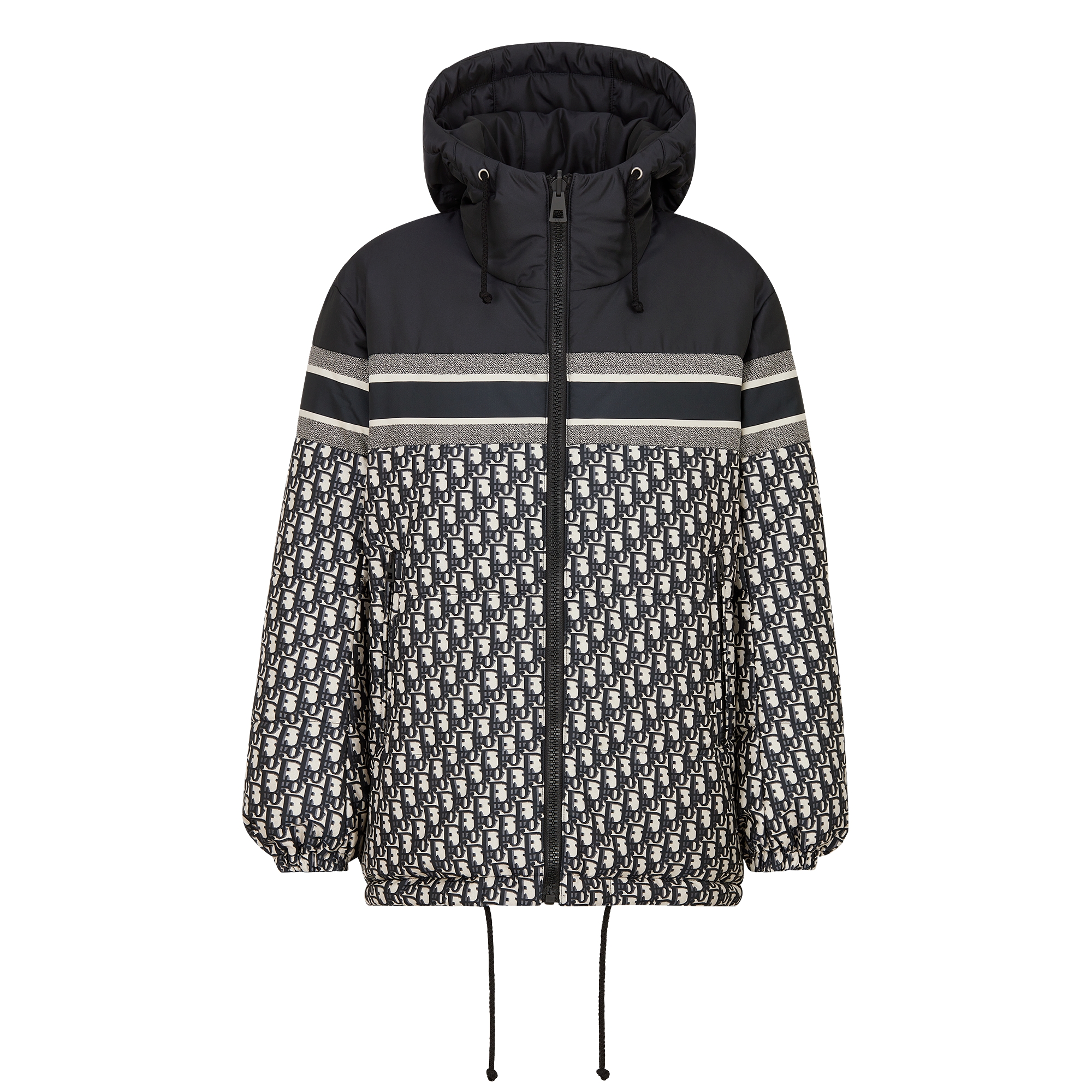 蓝色和米白色绗缝塔夫绸科技面料 Oblique 印花