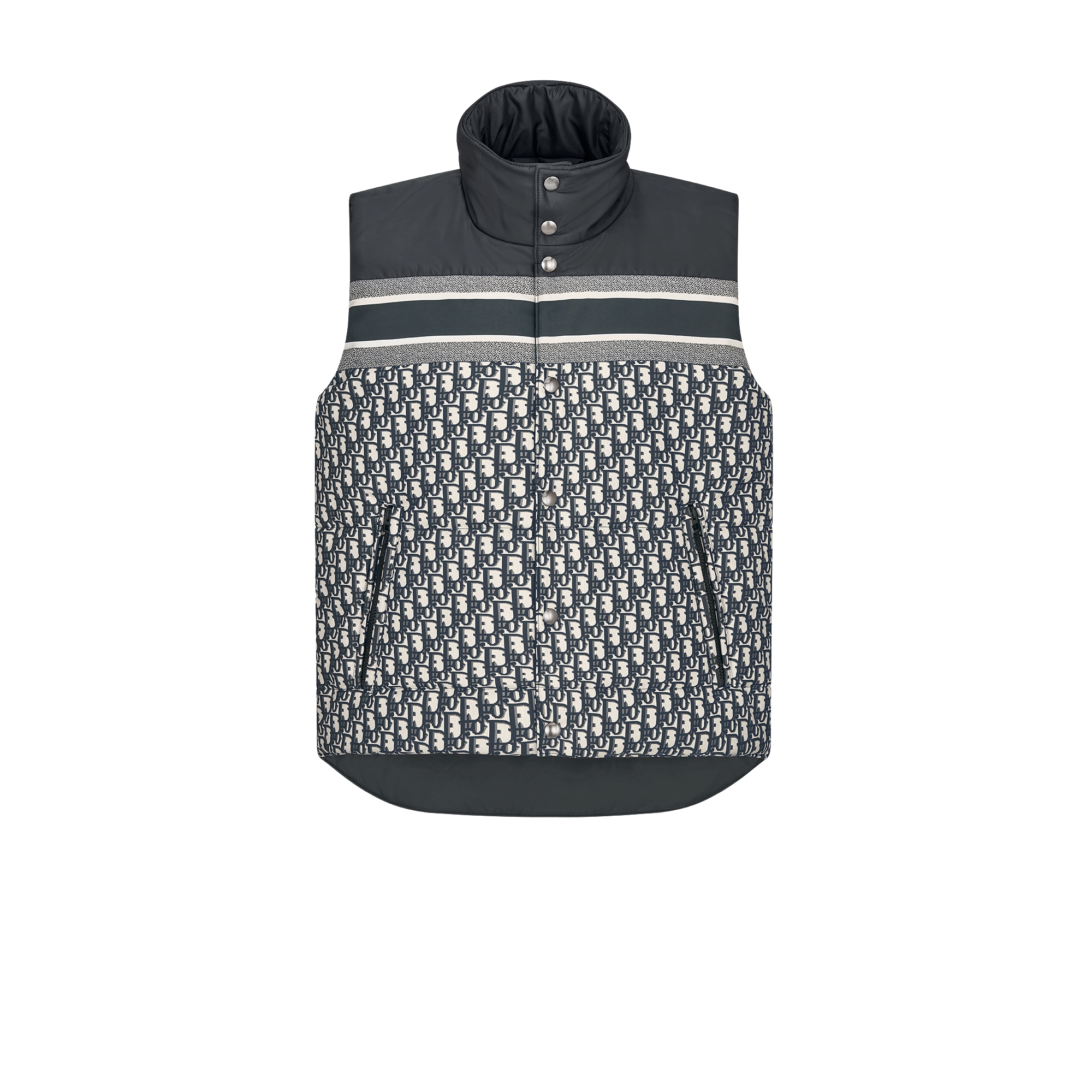 蓝色和米白色绗缝塔夫绸科技面料 Oblique 印花