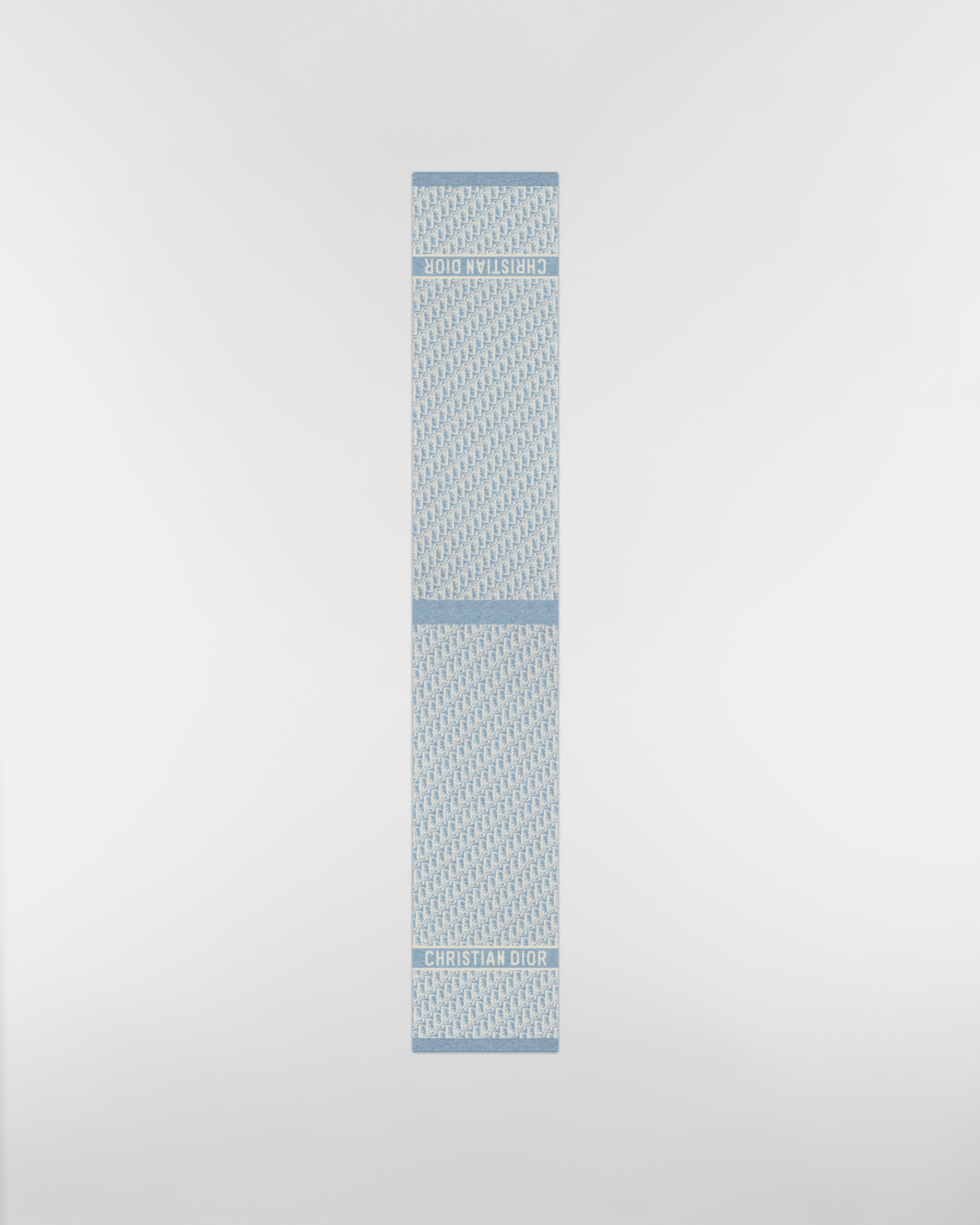 米白色和水洗蓝山羊绒混纺嵌花编织提花面料 Oblique 印花