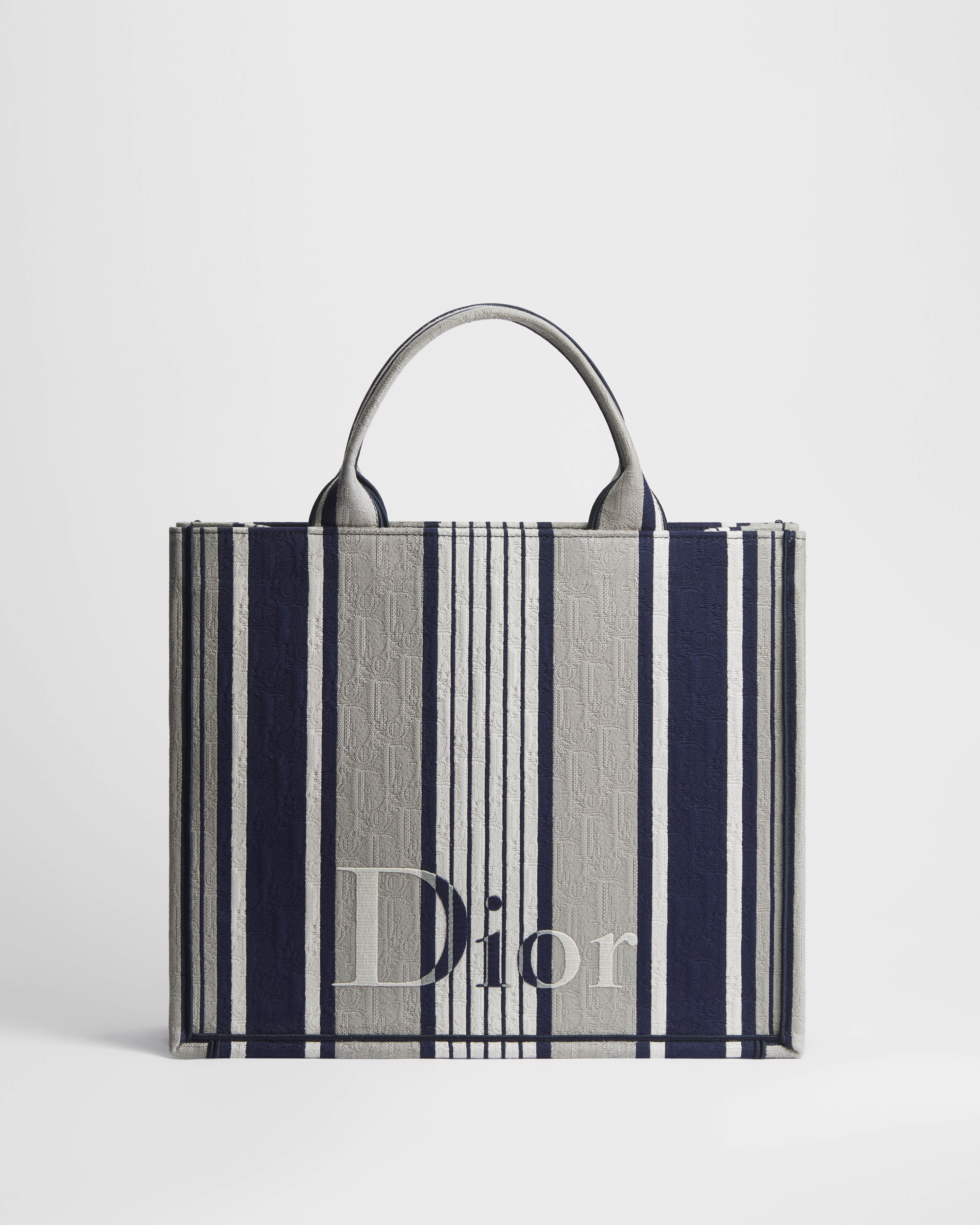 这款经典的 Book Tote 手袋来自 Dioriviera 限定系列,饰以 Dior Oblique Sun Stripes 图案,以条纹和 Dior 标志刺绣诠释 Dior 经典图案,彰显 Dior 工坊非凡的精湛工艺,同时也体现乔纳森·安德森 (Jonathan Anderson) 的现代视角。中号款式,实用设计,可手提、肩背或斜挎。