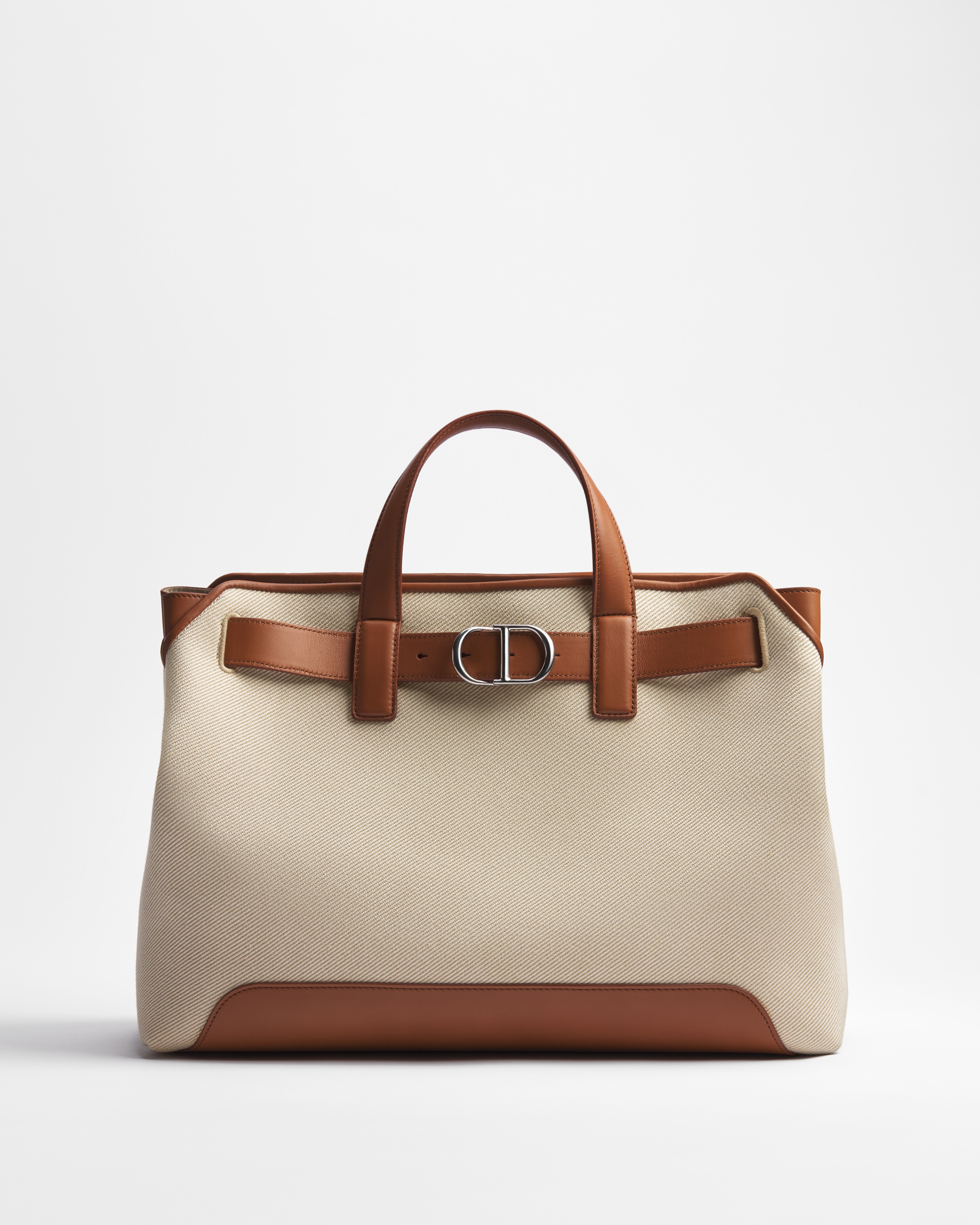 这款 Dior Normandie 手袋将实用设计与 Dior 的高订精神融为一体,以柔软廓形和高雅细节重新诠释。采用自然色亮面皮革和双色帆布精心制作,饰以 Dior Normandie 特色刺绣孔眼,搭配可调节皮革饰带和 CD 搭扣,可闭合或敞开,尽显休闲风范。侧面展示图形风格结构设计,并设有 Dior 标志垫脚和顶部手柄,精致点缀突显高雅魅力。内部空间宽敞,设有一个插袋和一个拉链口袋。中号款式,搭配可调节、可拆卸的皮革肩带,可舒适手提、肩背或斜挎。