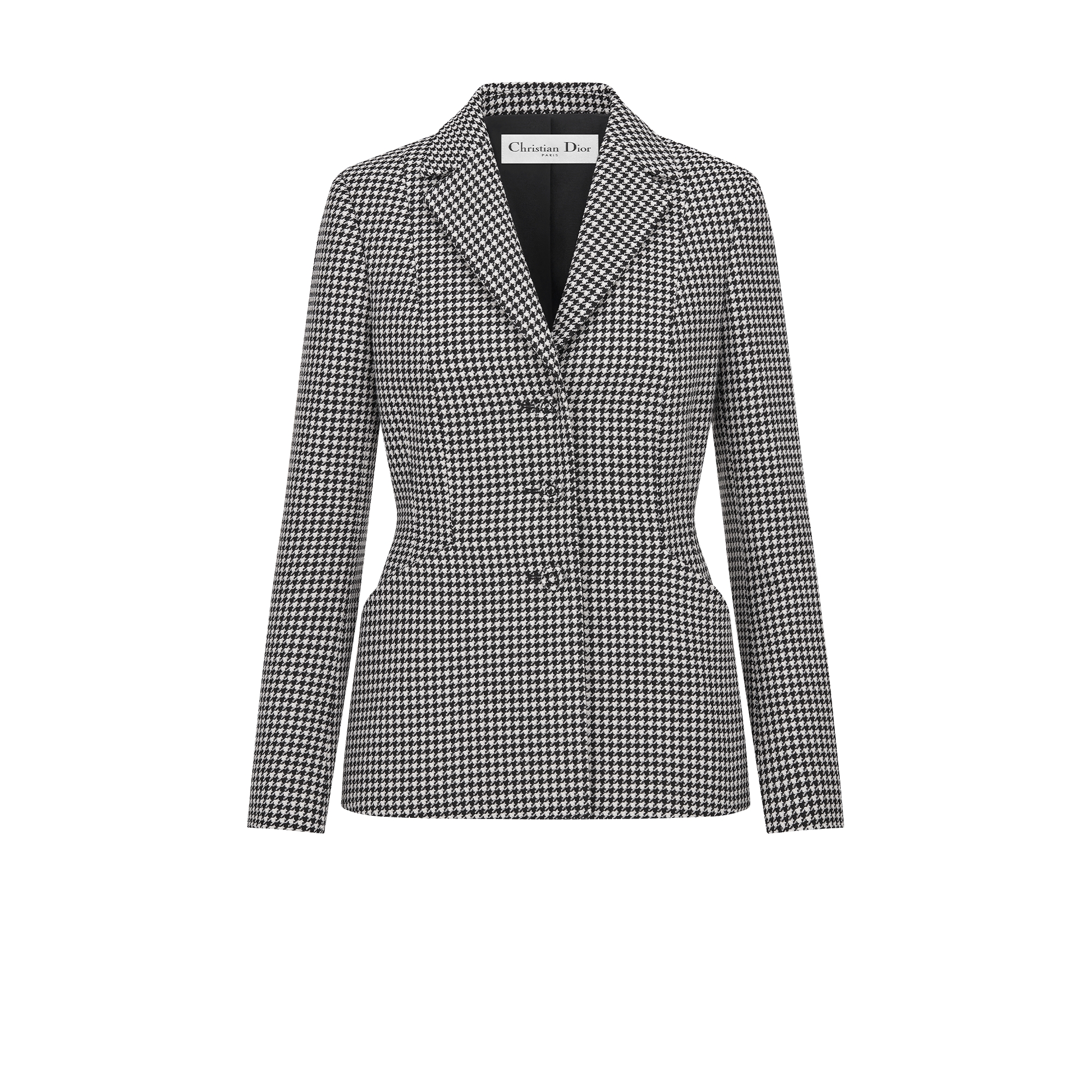 黑色和白色绵羊毛混纺面料千鸟格纹