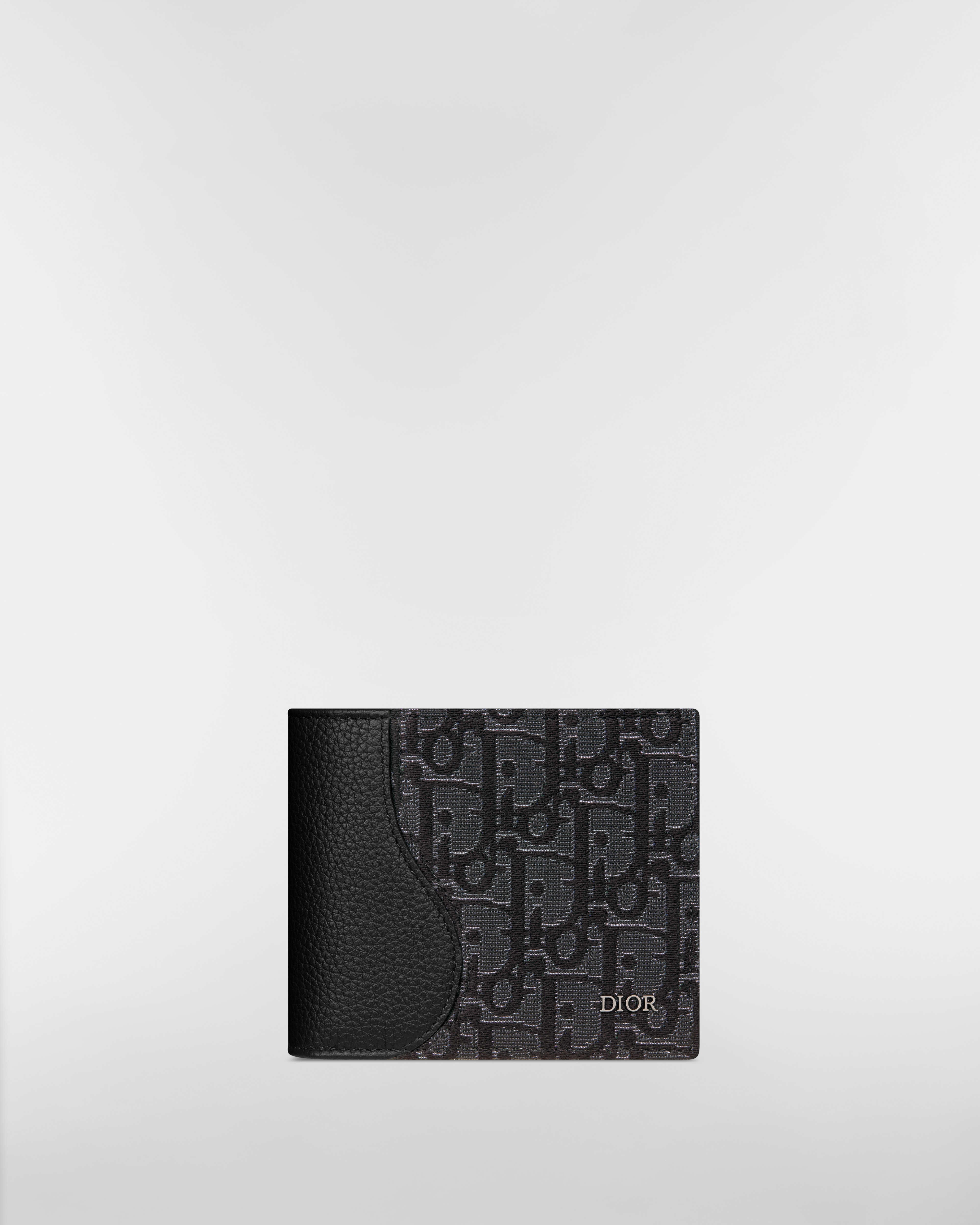 黑色粒面牛皮革和银色调金属光泽 Oblique 印花面料细工镶嵌