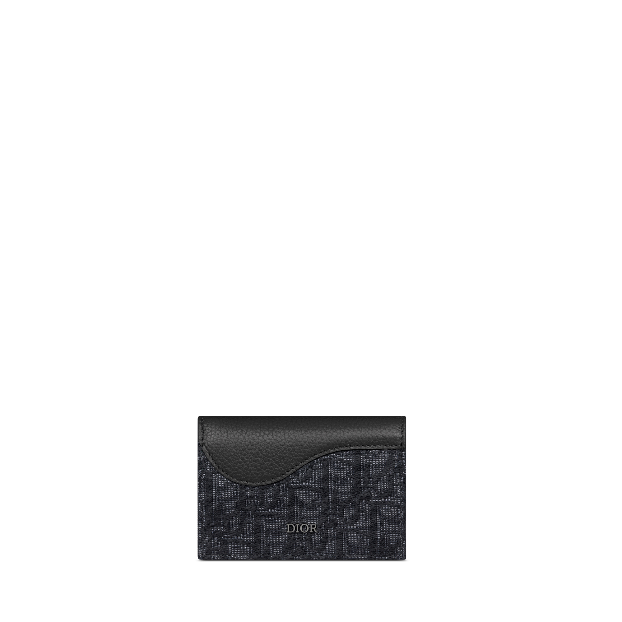 • 马鞍名片夹 黑色细工镶嵌粒面牛皮革搭配米色和黑色 Oblique 印花面料 E01 黑色细工镶嵌粒面牛皮革搭配米色和黑色 Oblique 印花面料