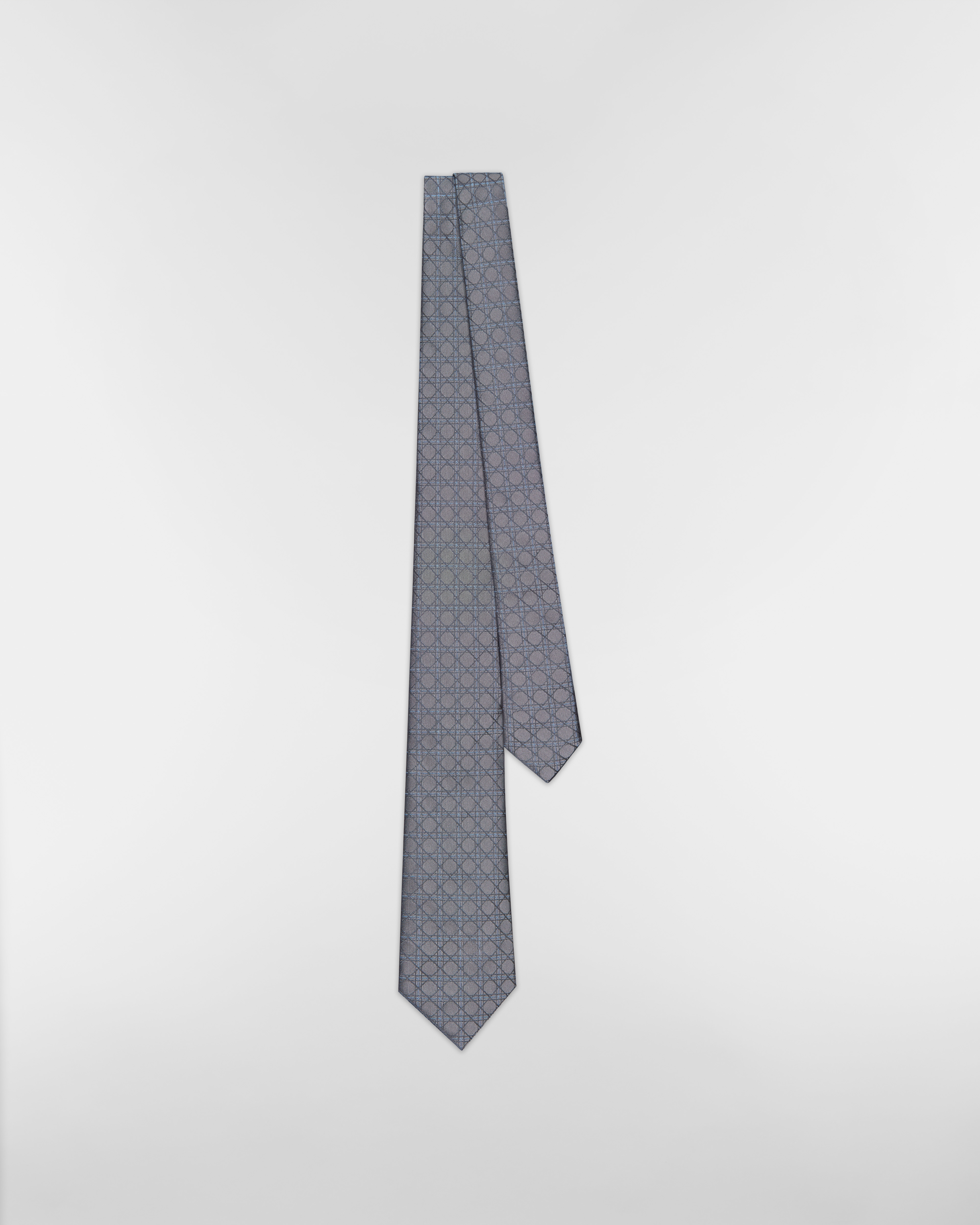 •  海军蓝色和白色桑蚕丝面料藤格纹