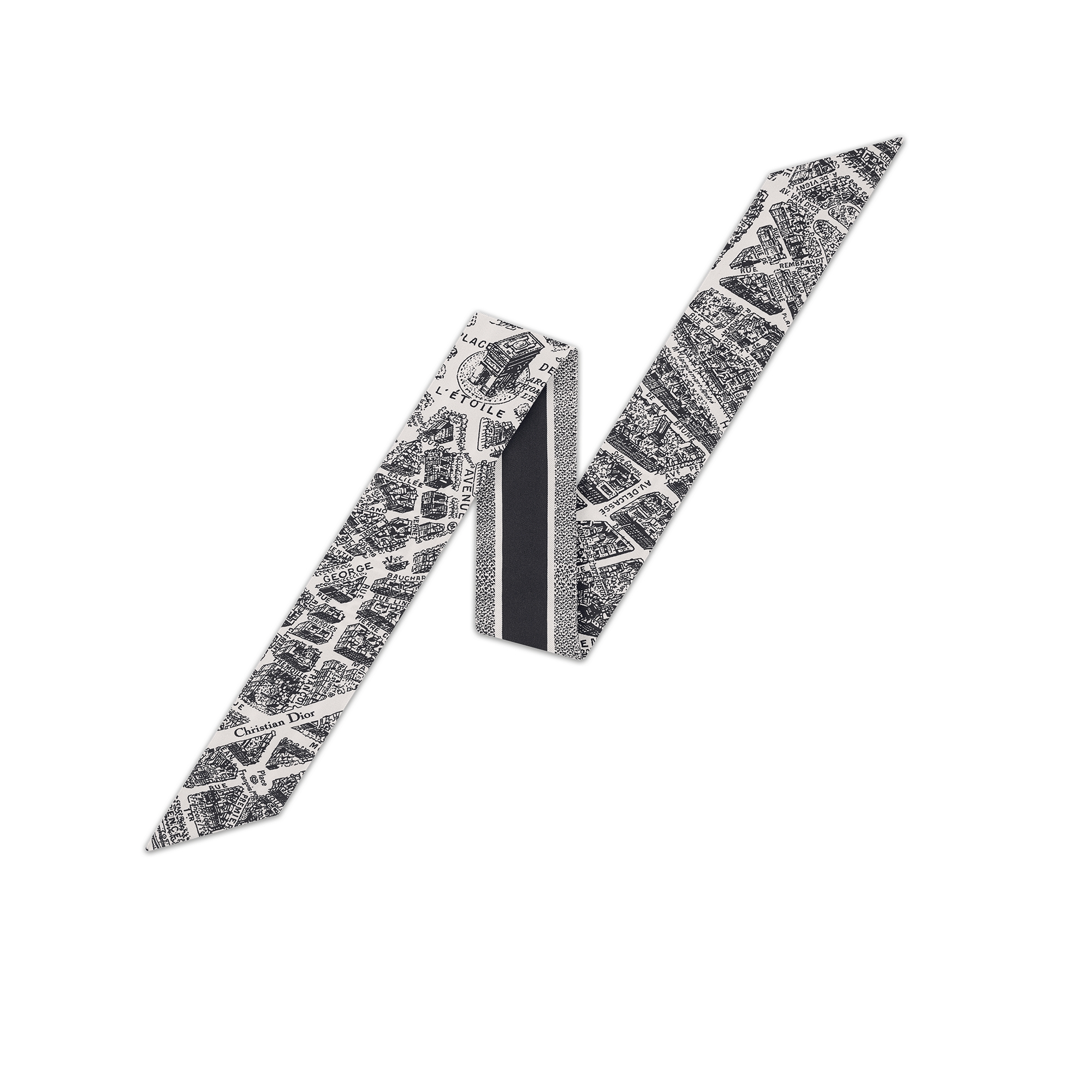 白色和黑色桑蚕丝斜纹面料 Plan de Paris 印花