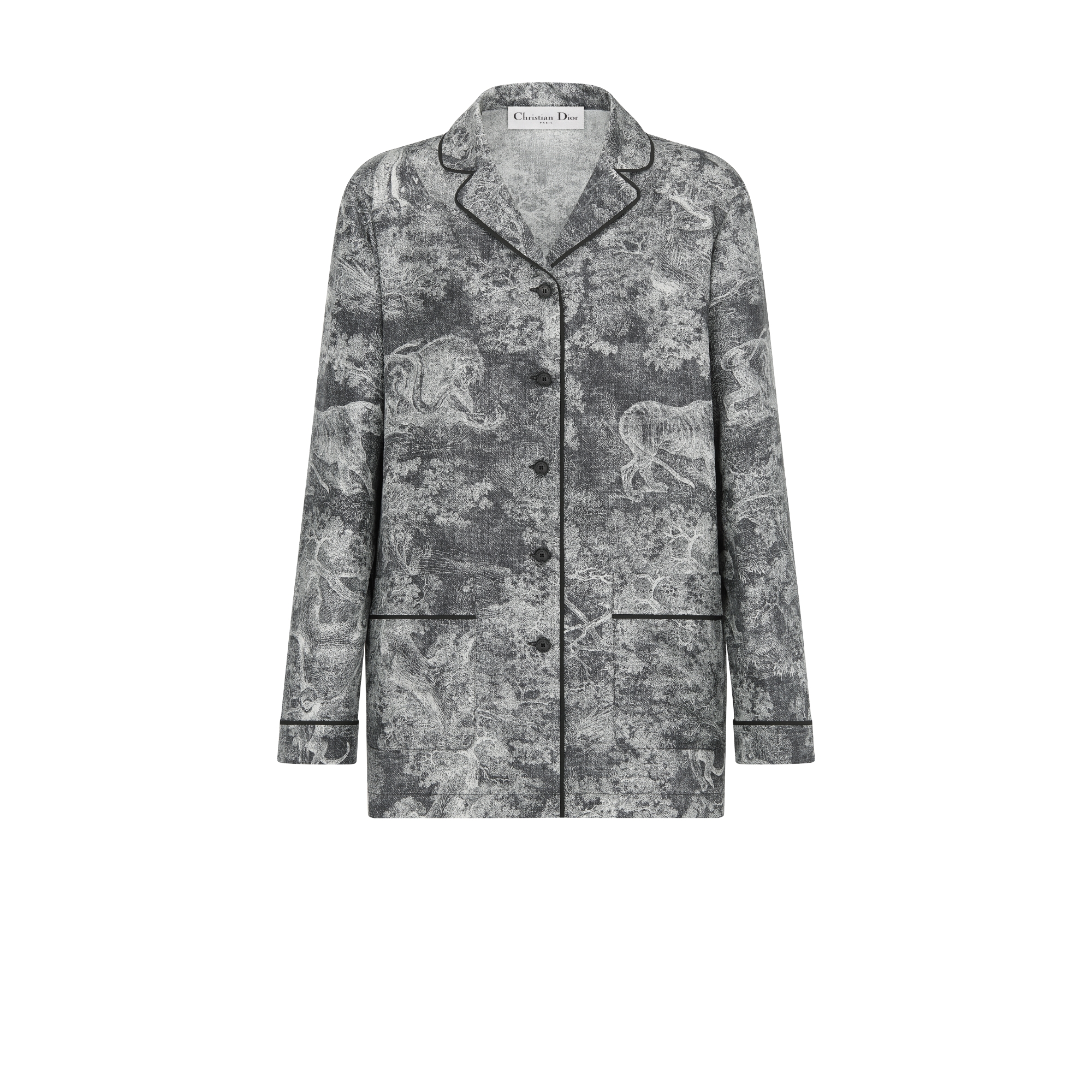 深蓝色和白色桑蚕丝斜纹面料 Sauvage 茹伊印花图案