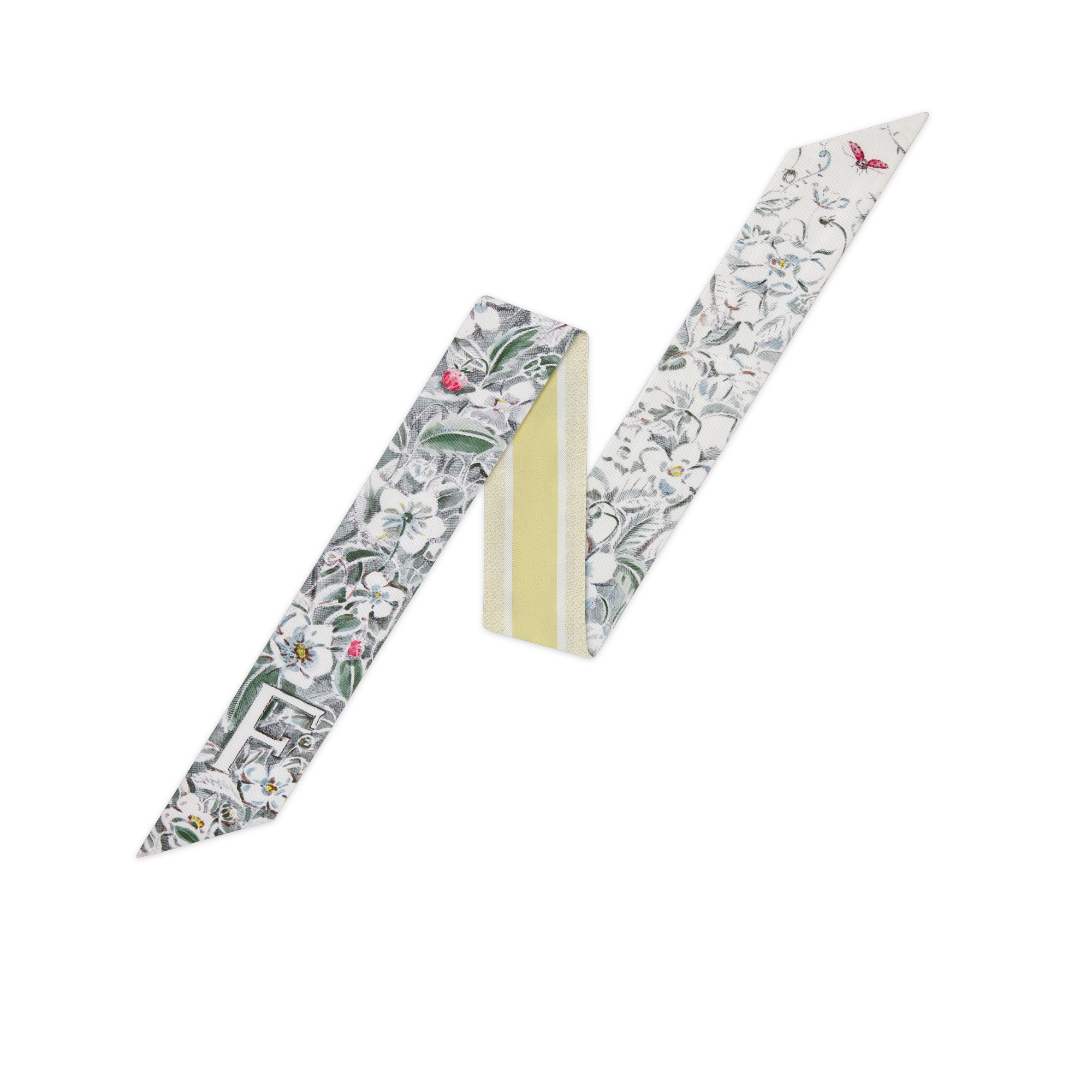 象牙色桑蚕丝斜纹面料多色 F Fraisier des Bois - Fortune 图案