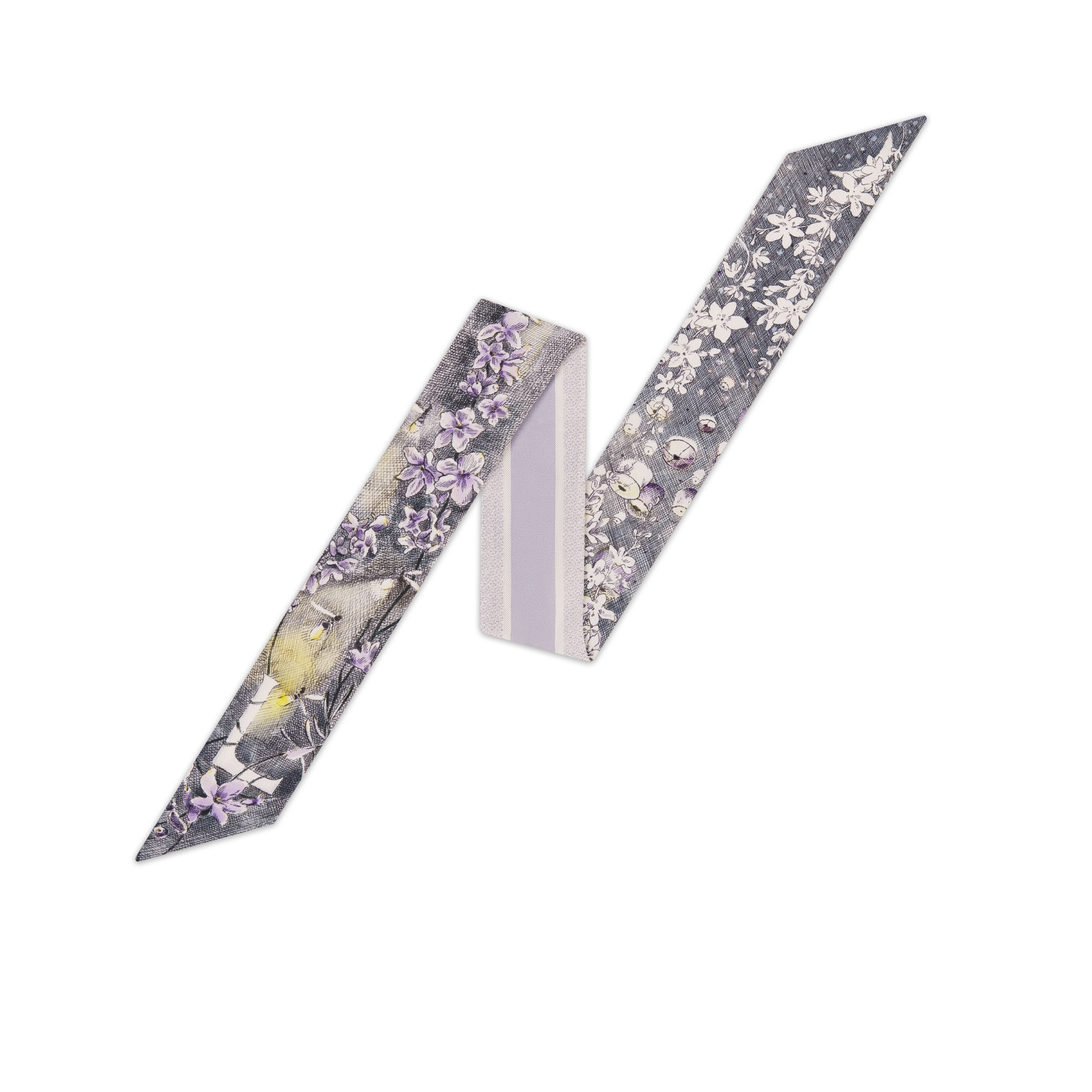 象牙色桑蚕丝斜纹面料多色 L Lavande - Lumière 图案印花