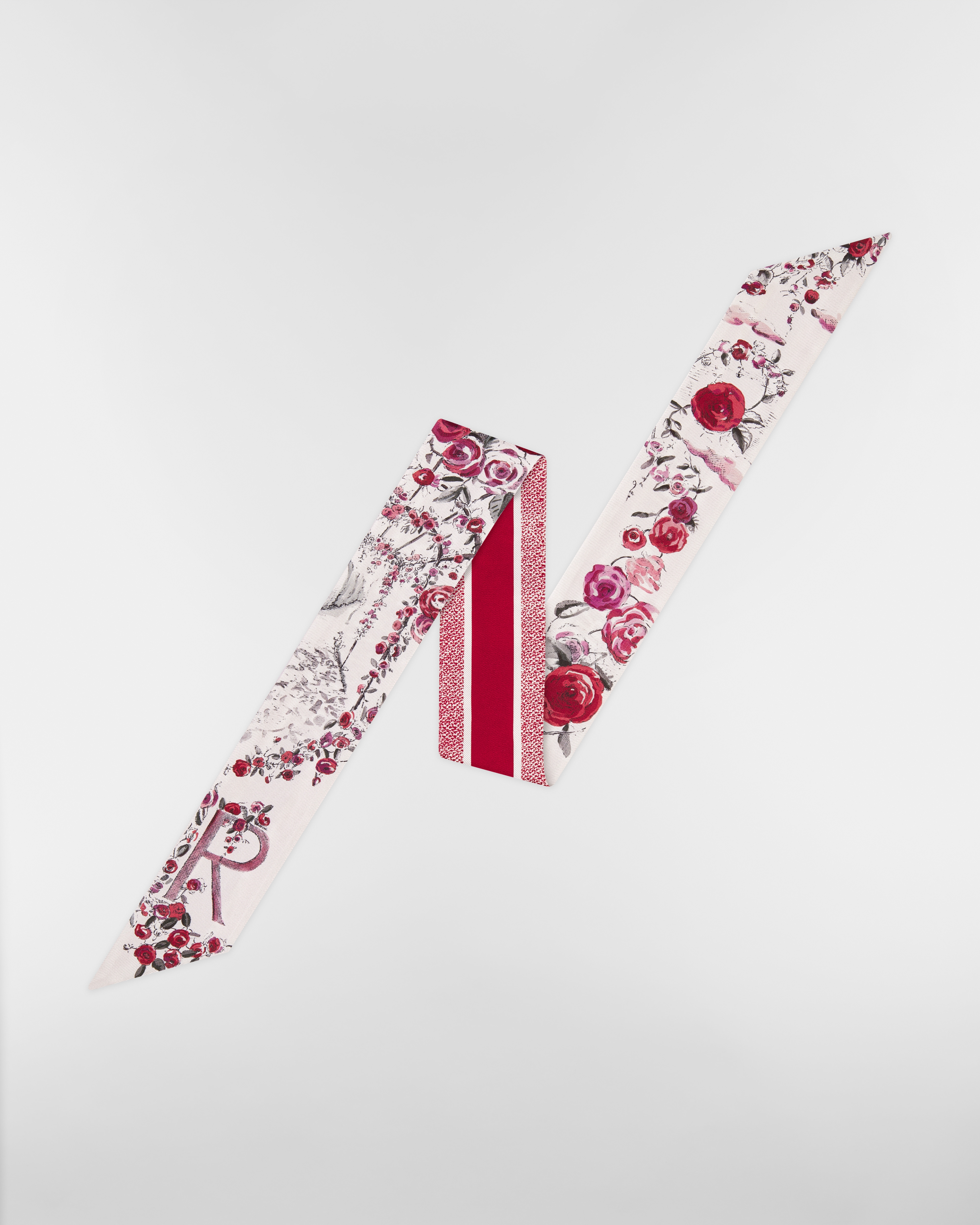 象牙色桑蚕丝斜纹面料多色 R Rose - Romantique 图案