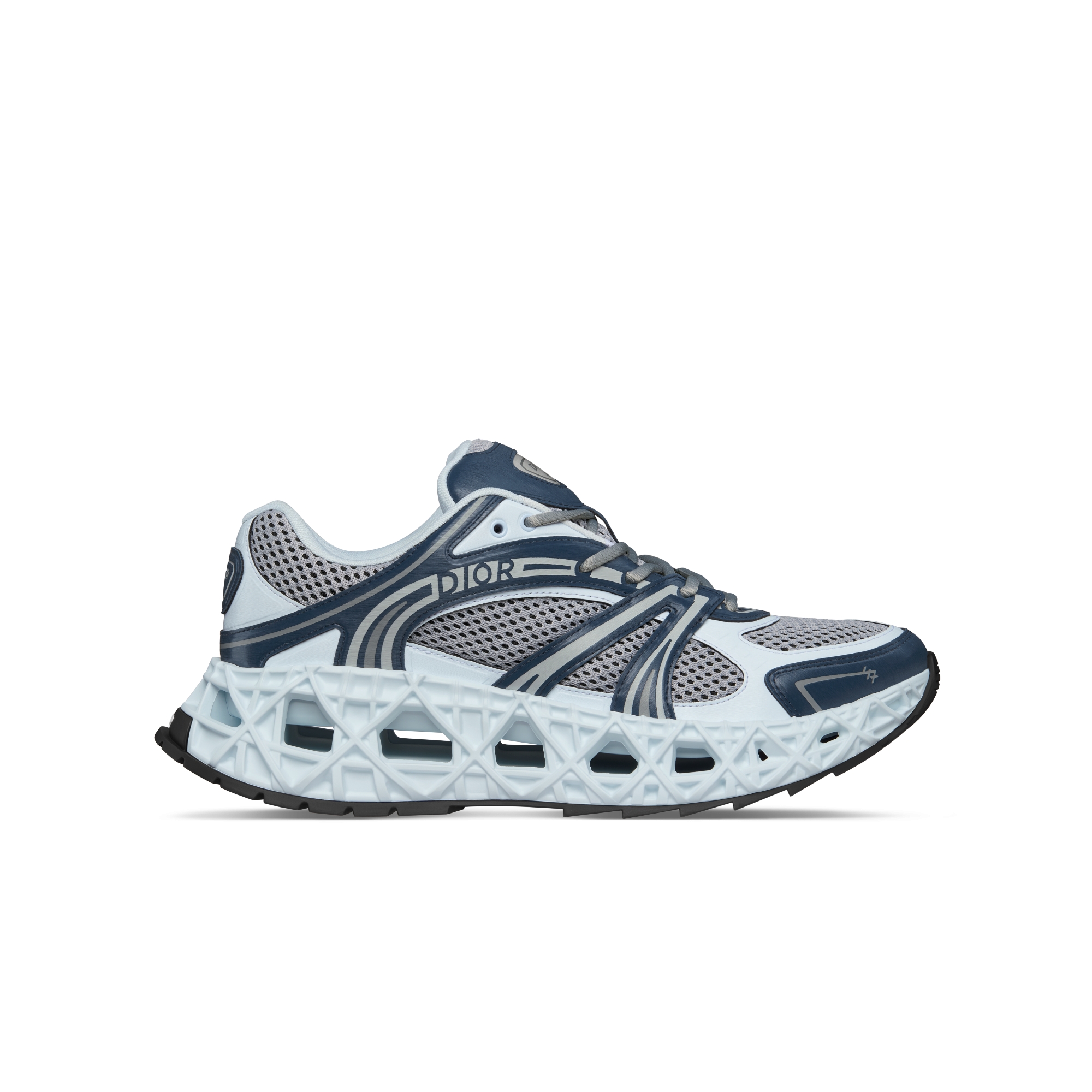 •  蓝色和黑色科技面料搭配蓝色网眼织物