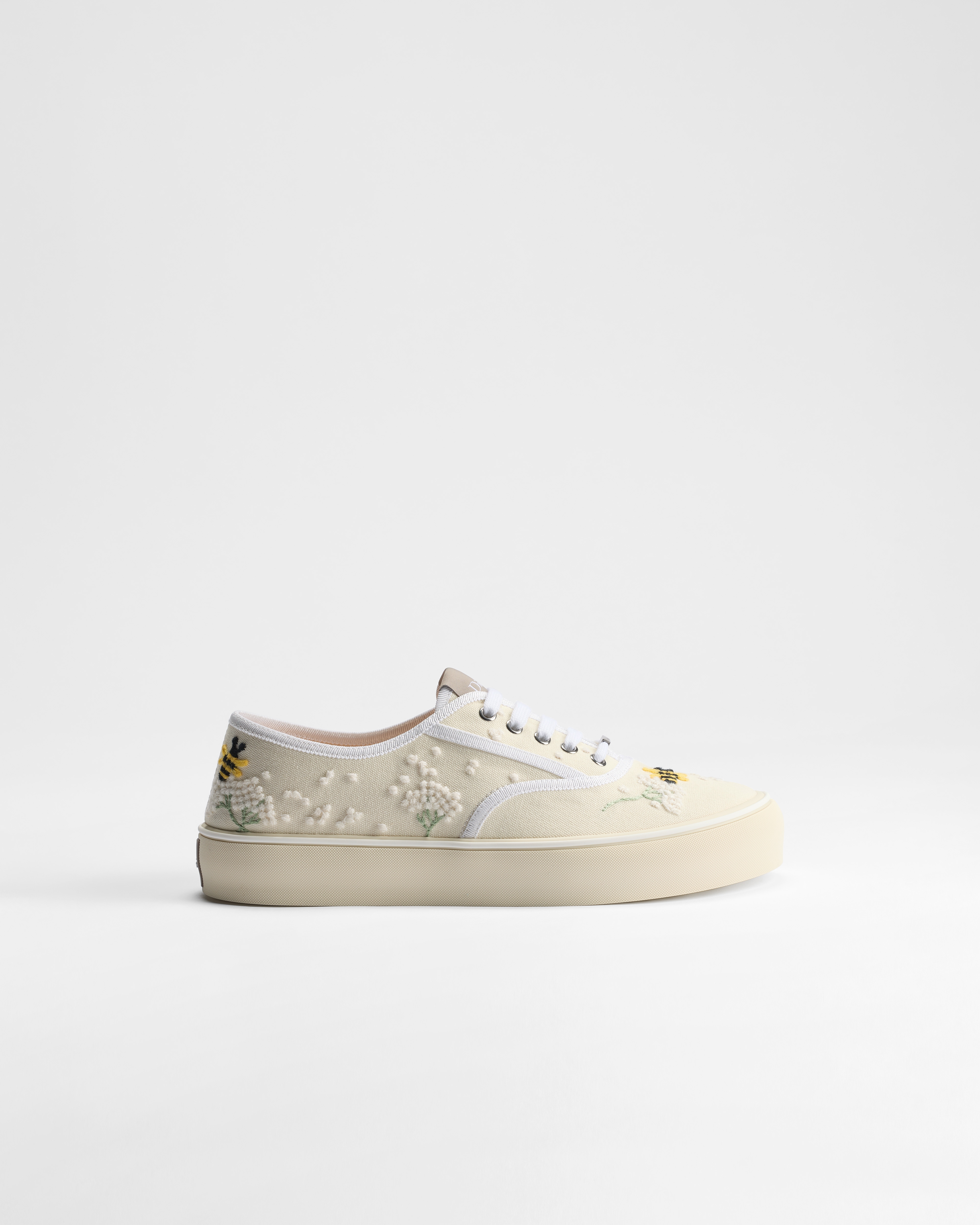 这款乔纳森·安德森 (Jonathan Anderson) 设计的 Dior Saltwind 运动鞋时尚别致,全新演绎经典航海风鞋款。采用棉质帆布精心制作,饰以白色 Dior Flower Bee 图案刺绣,彰显充满趣味的美学风格,致敬 Dior 钟爱花卉的传承。款式轻盈舒适,是 Dior 全新经典单品。可与各式男装或女装造型搭配,彰显时尚简约的风范。