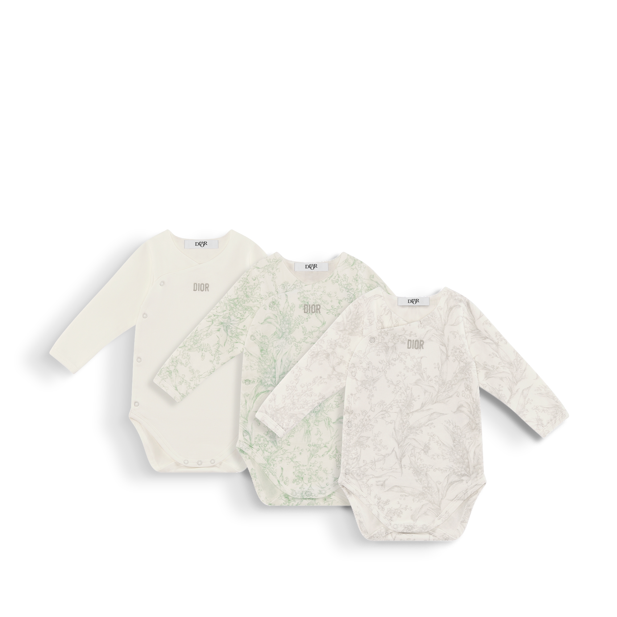 象牙色棉质双面布绿色和灰色铃兰印花