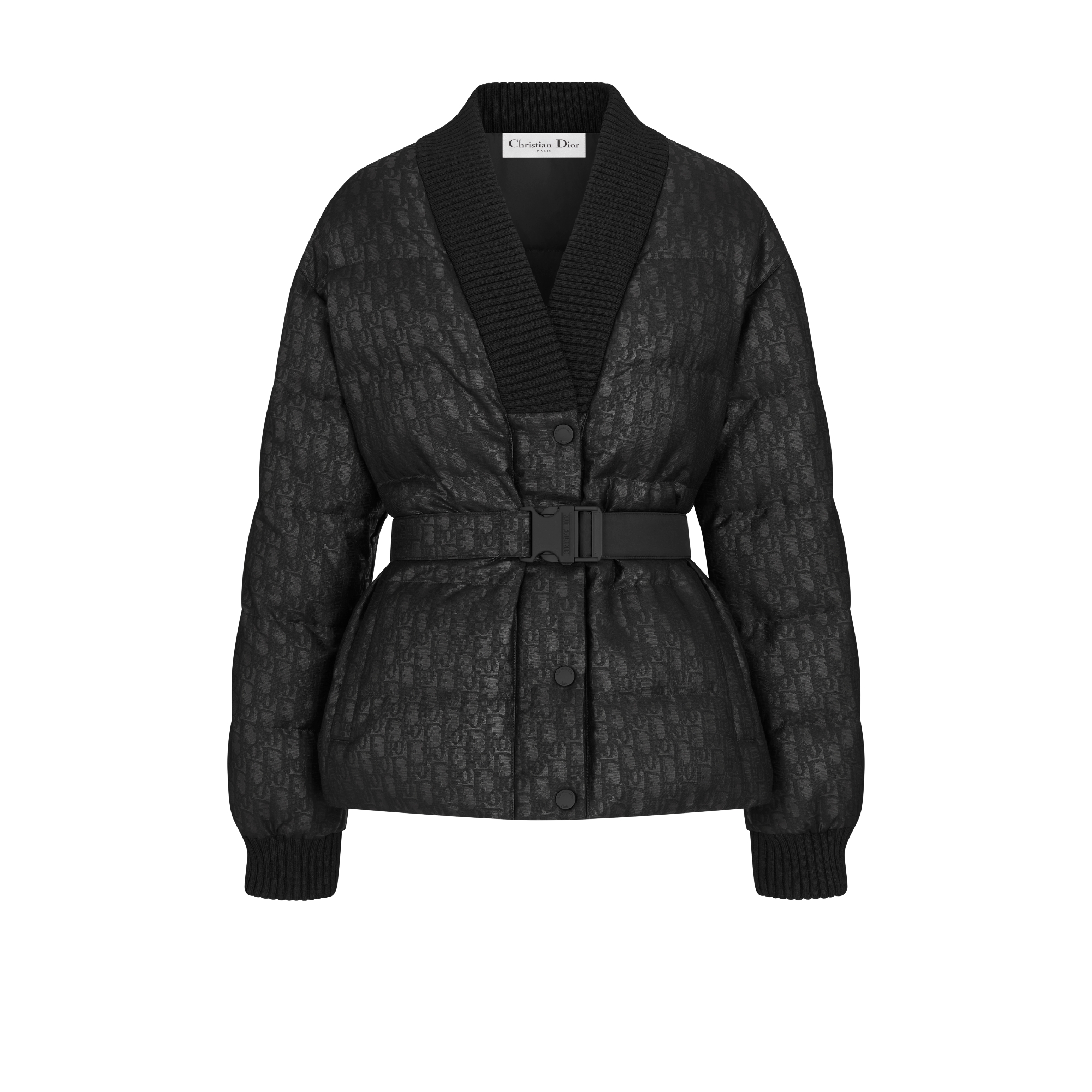 黑色绗缝塔夫绸科技提花面料 Oblique 印花搭配腰带
