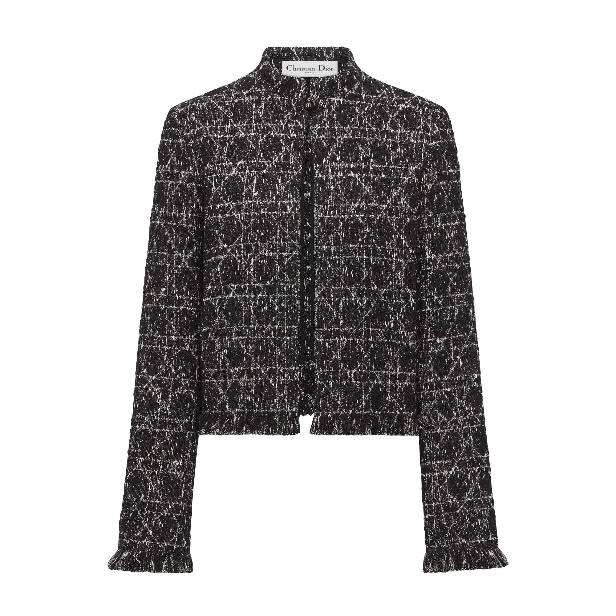 黑色棉质混纺粗花呢白色超大藤格纹