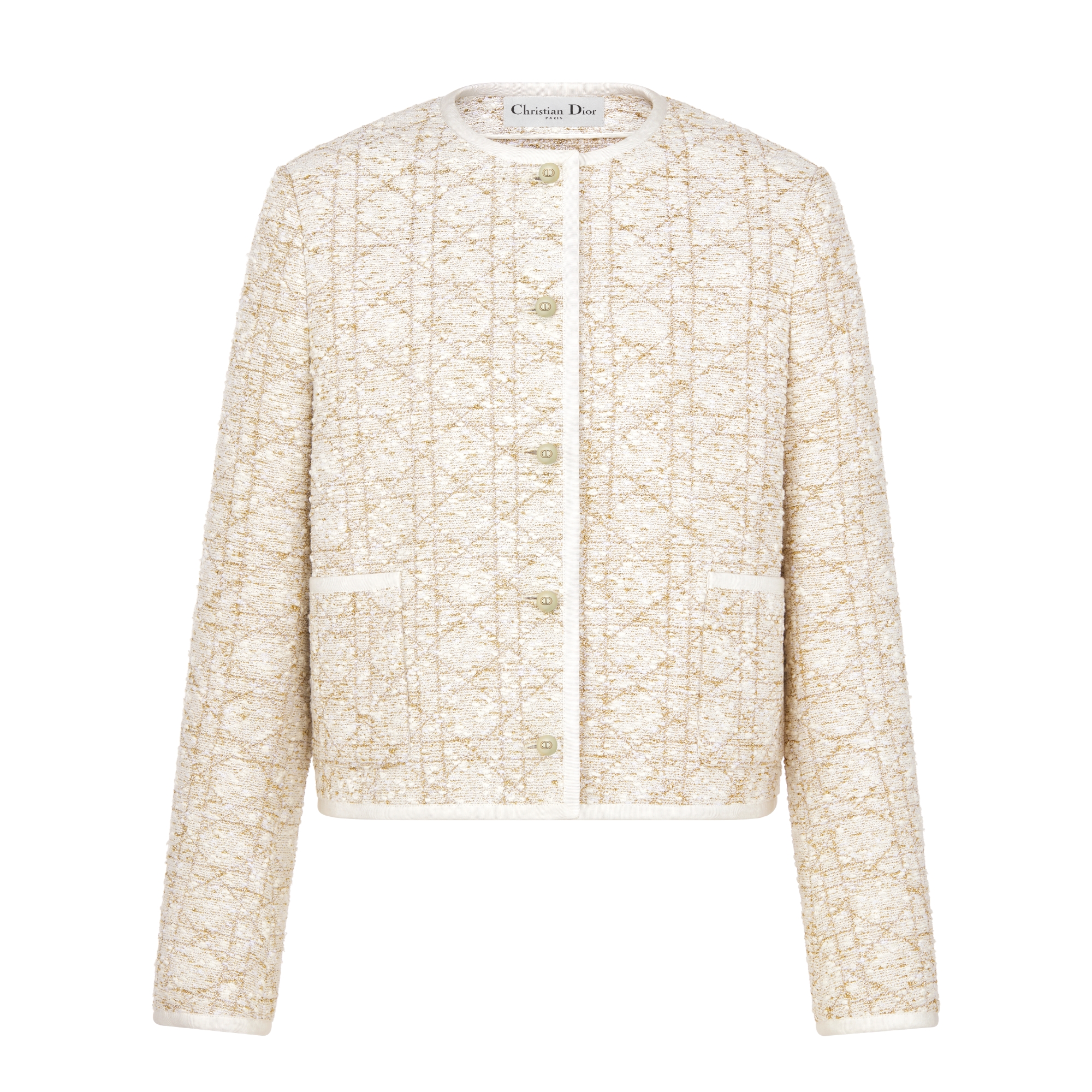 白色和金色调棉质混纺粗花呢超大藤格纹