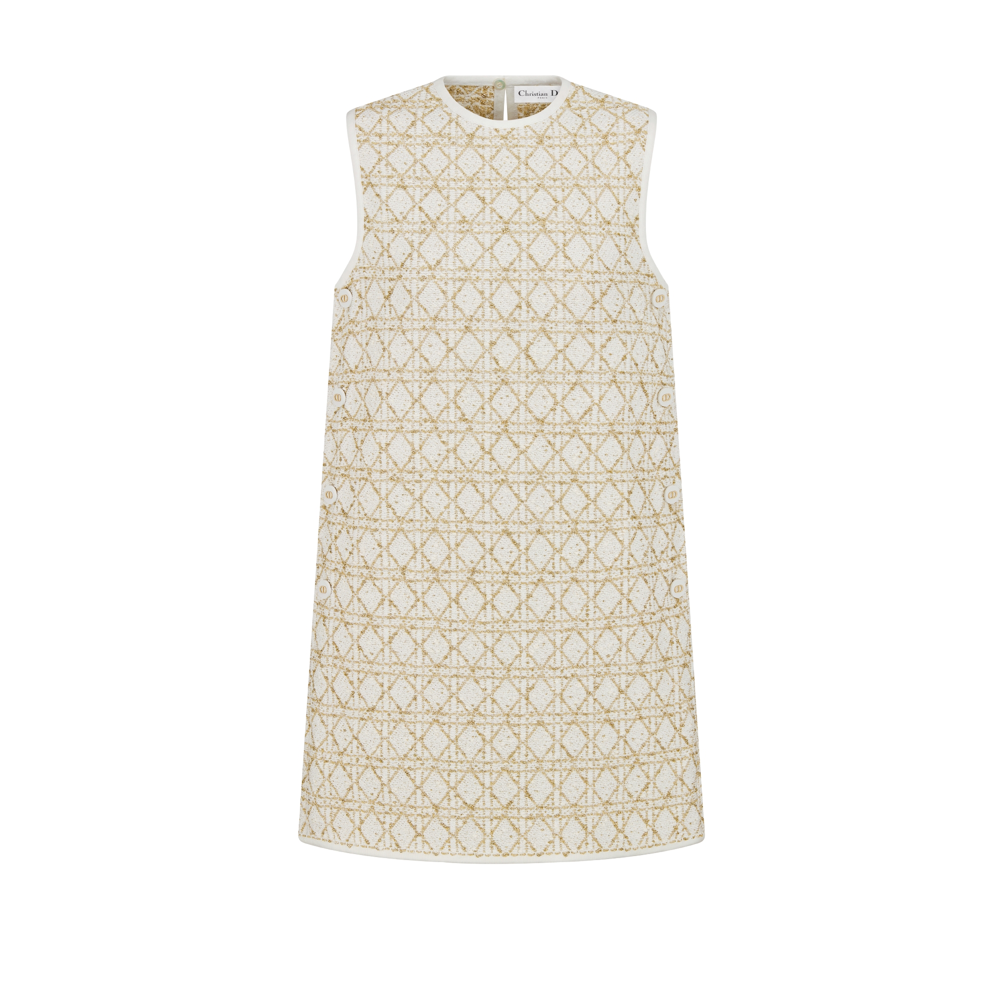白色和金色调棉质混纺粗花呢藤格纹
