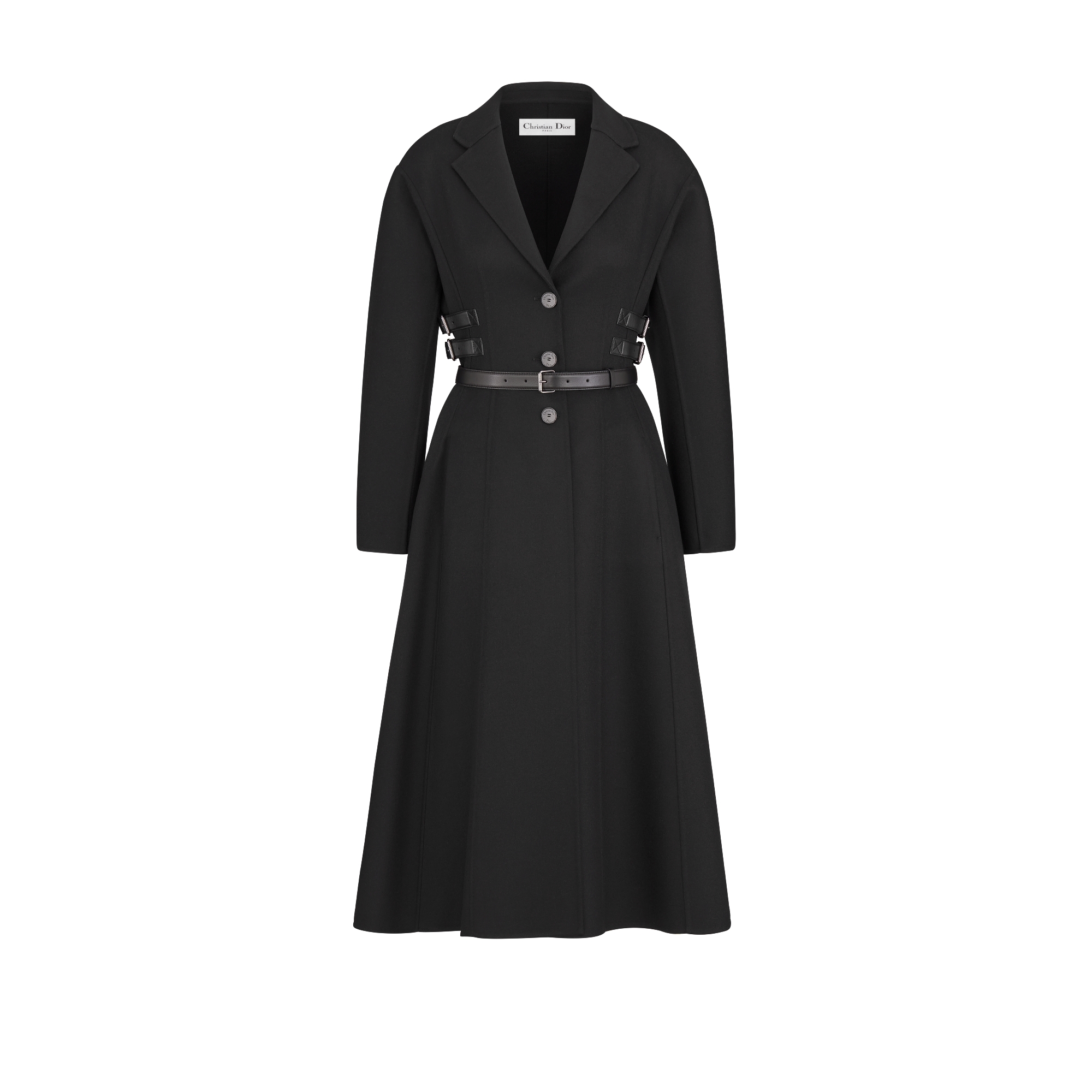 黑色双面绵羊毛混纺毛毡面料搭配腰带