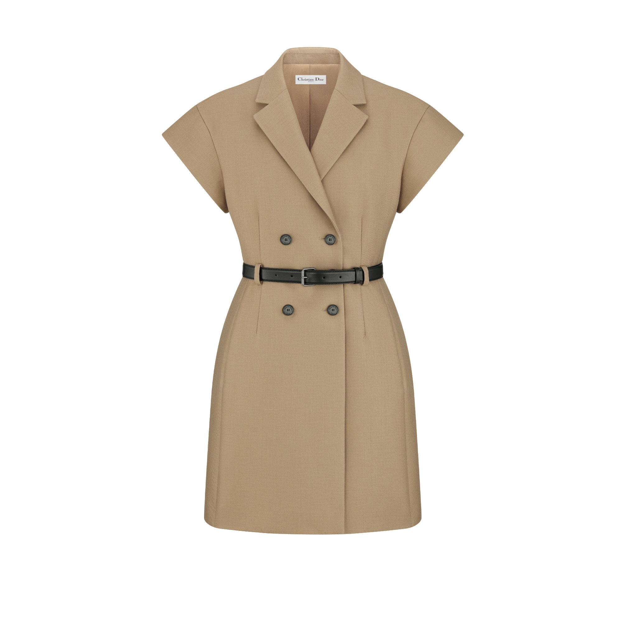 米色绵羊毛和桑蚕丝混纺呢绒面料搭配腰带