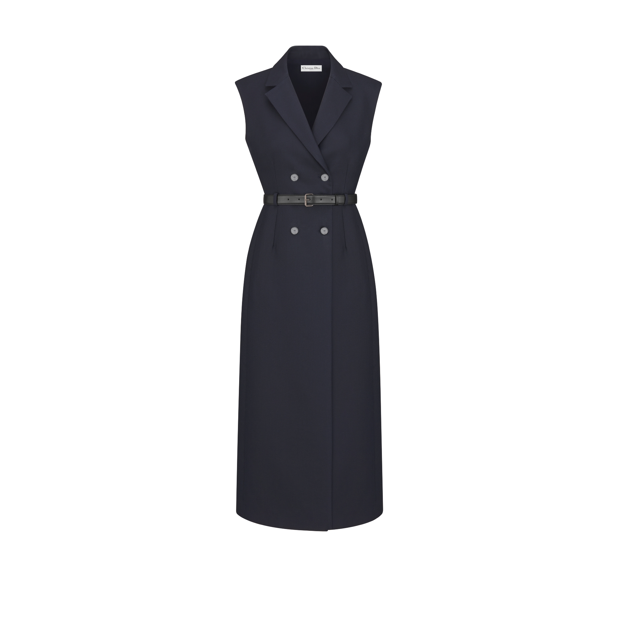 蓝色绵羊毛混纺呢绒面料搭配腰带