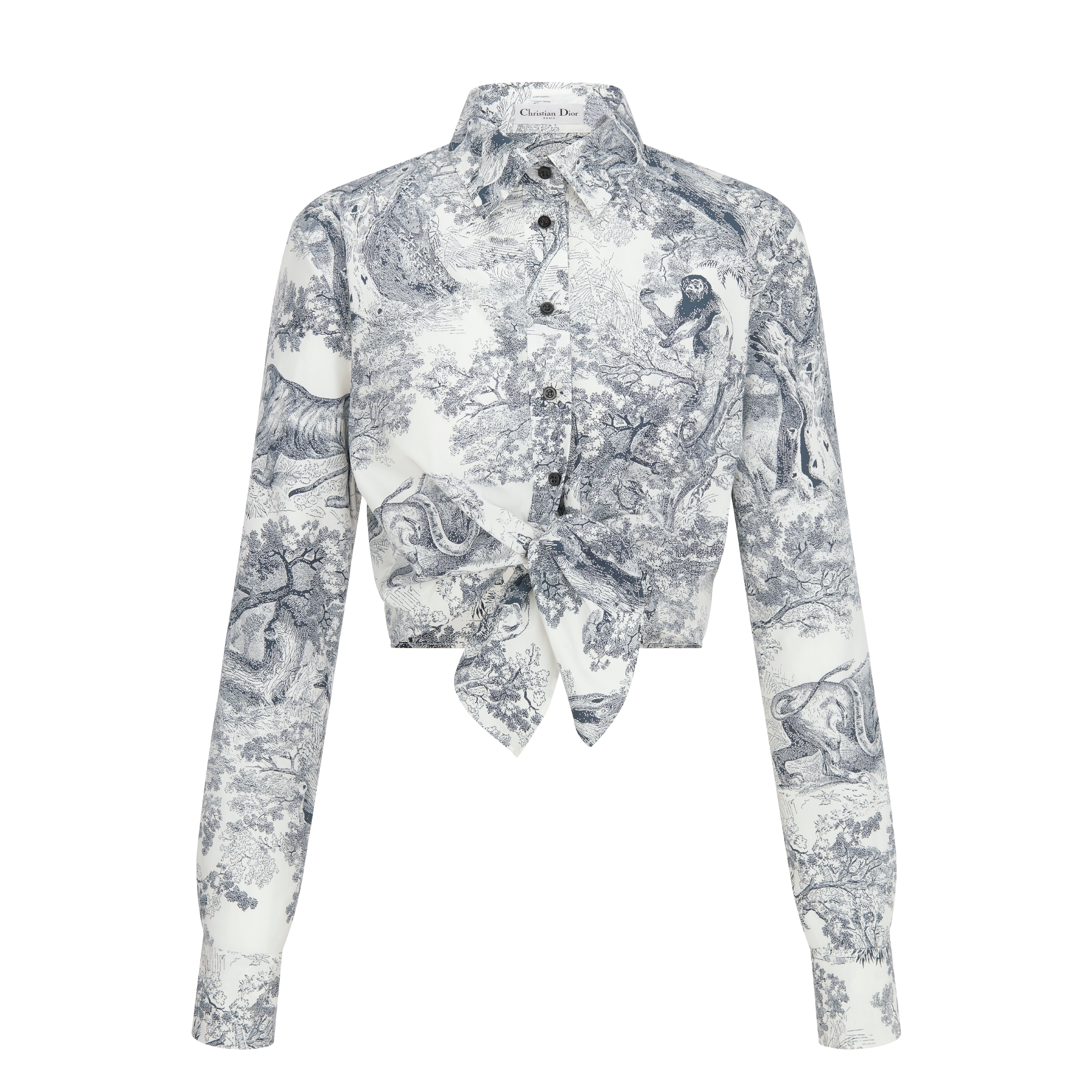 白色和深蓝色棉质混纺府绸 Sauvage 茹伊印花
