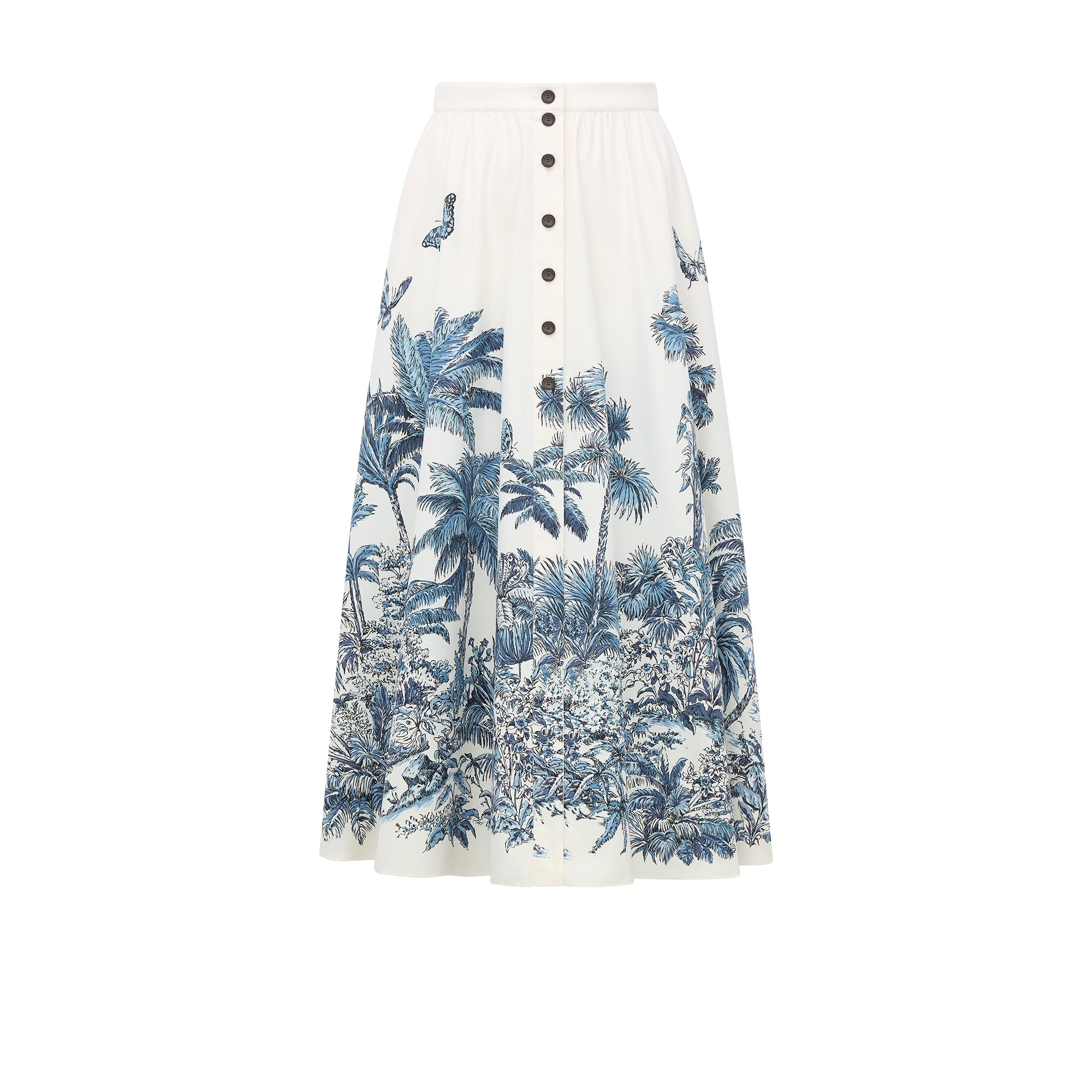 白色和蓝色棉质混纺府绸 Palms 茹伊印花