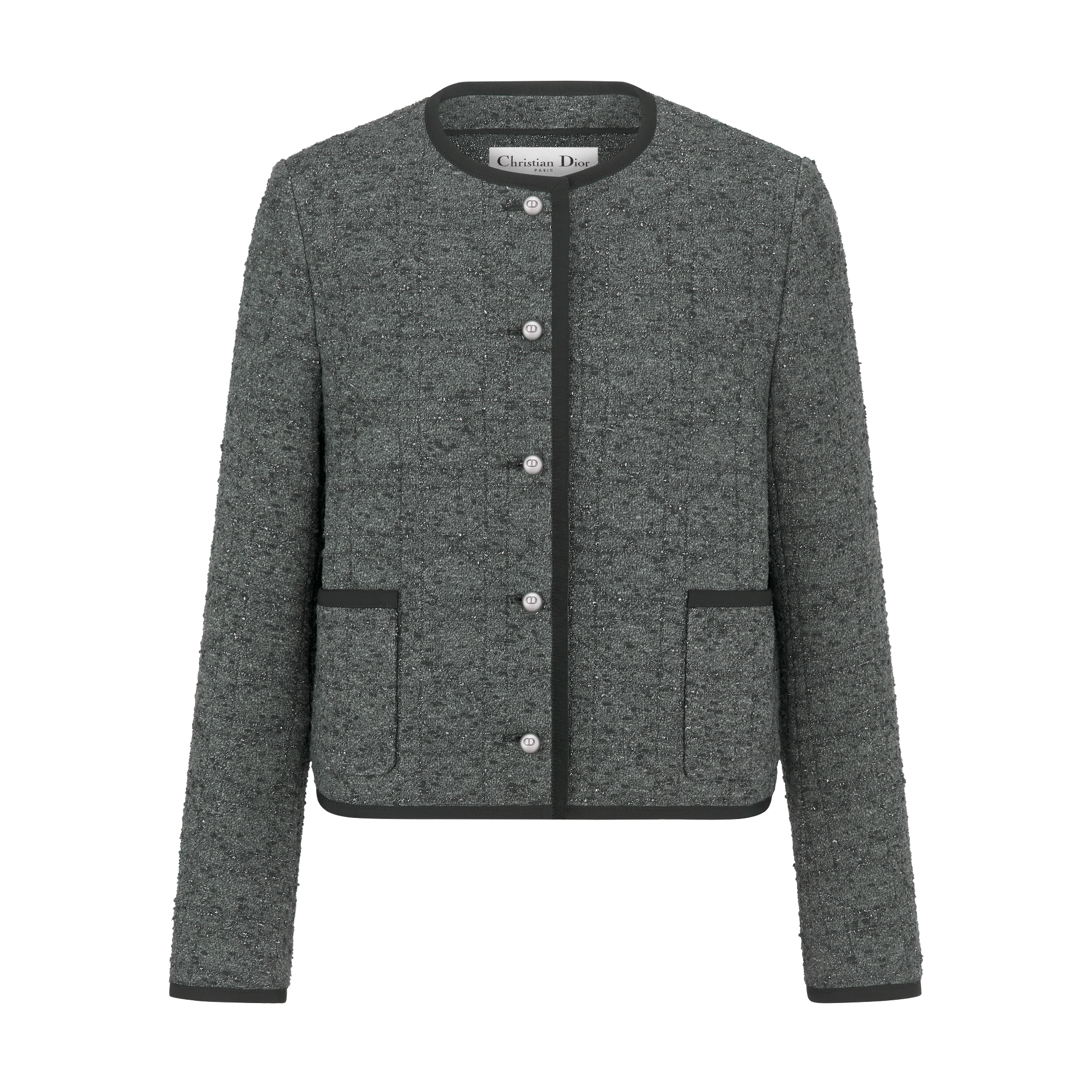 •  灰色棉质混纺粗花呢银色金属光泽线超大藤格纹