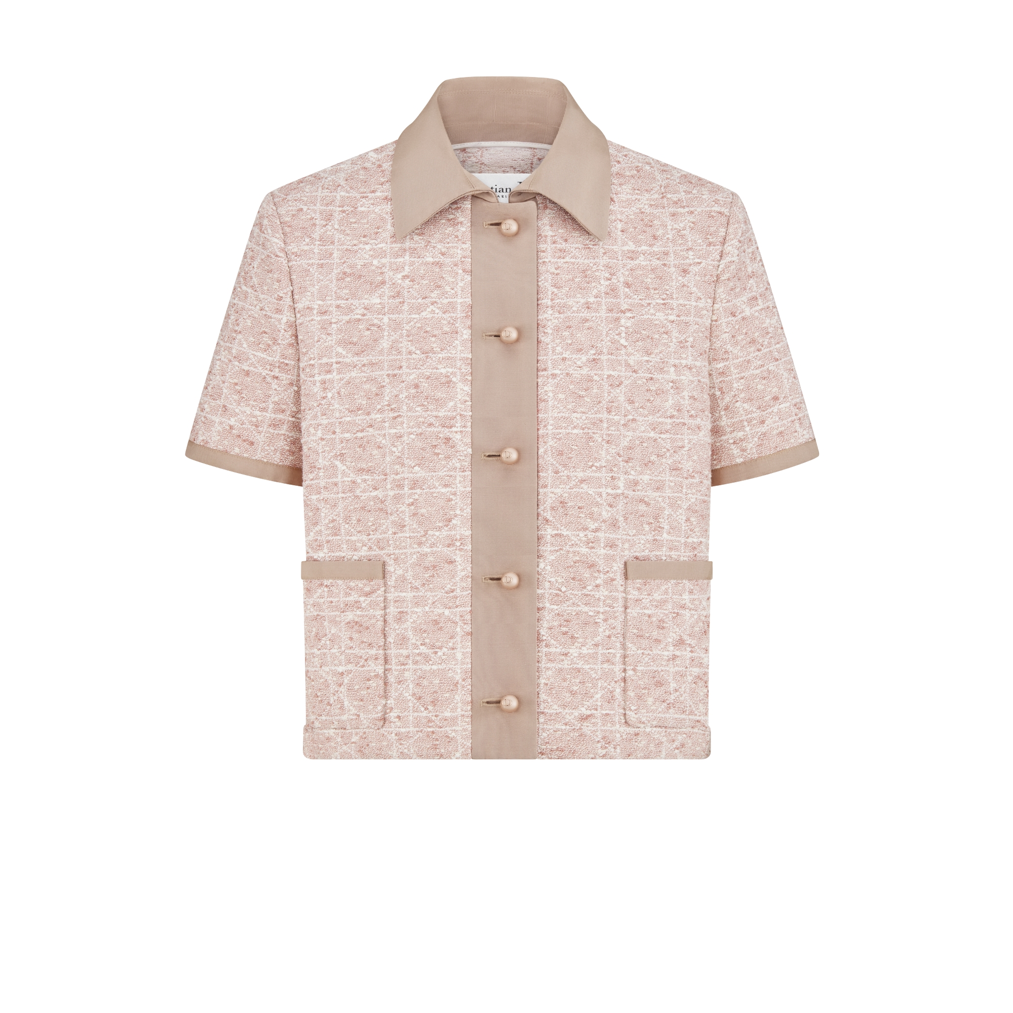 粉色棉质混纺粗花呢超大藤格纹