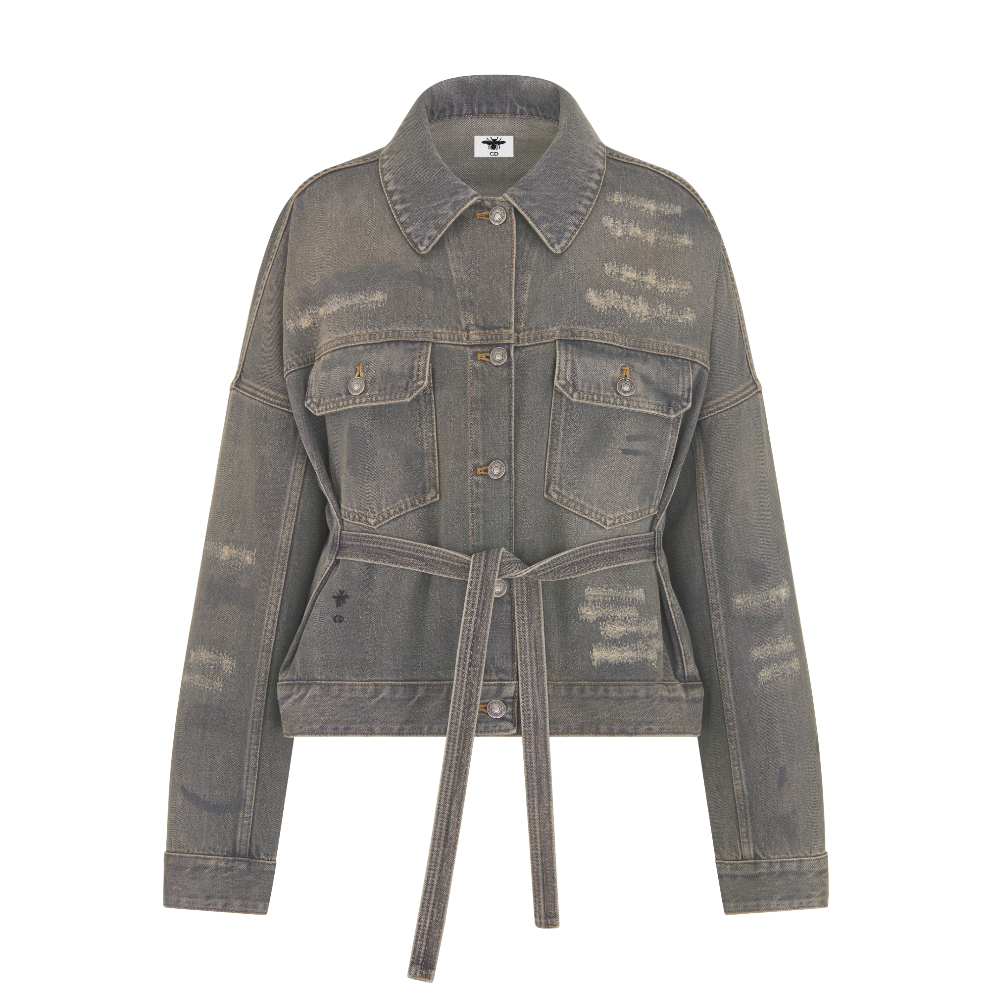 灰色石洗棉质牛仔布复古效果搭配腰带