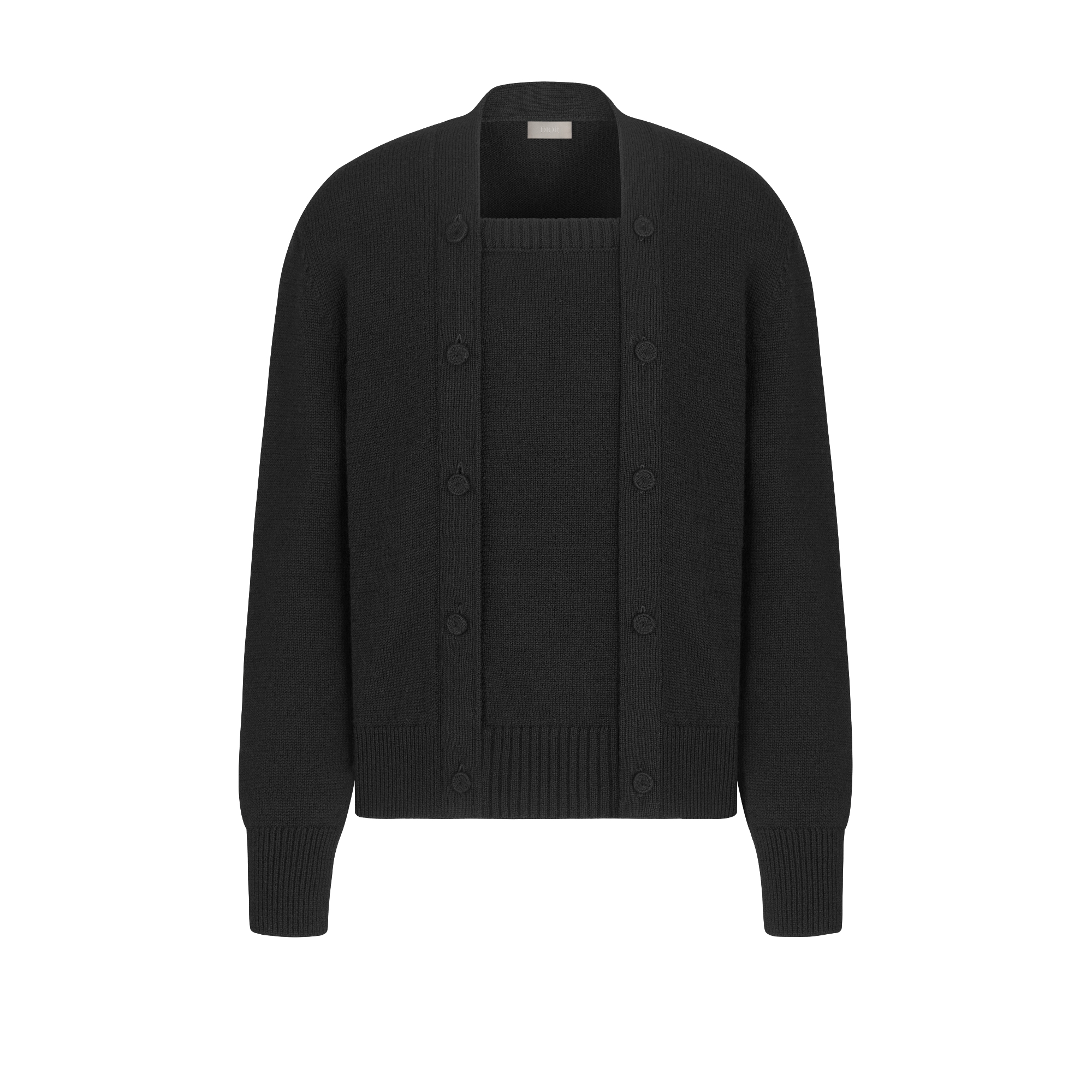 黑色绵羊毛平纹针织面料 Christian Dior Paris 标签