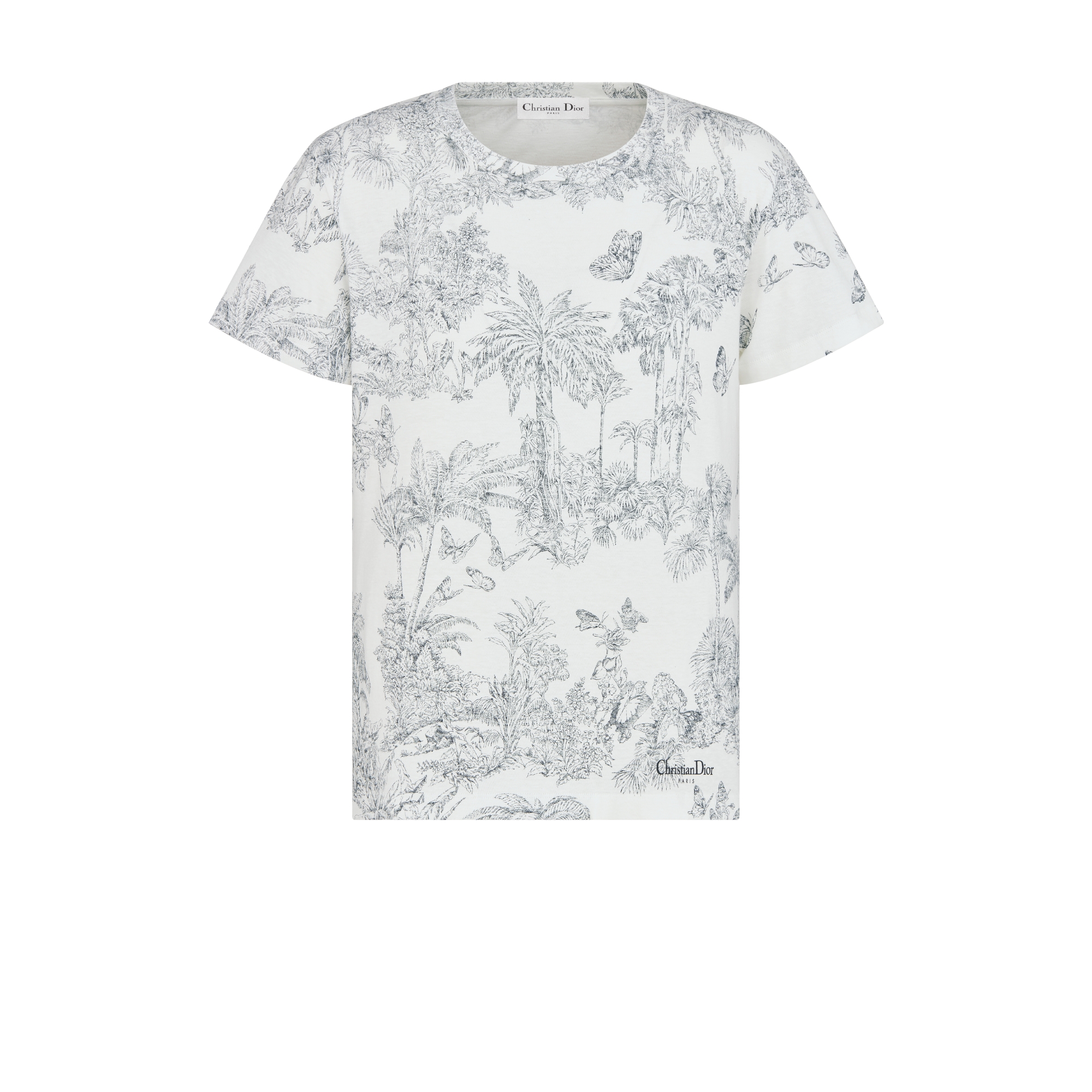 白色和蓝色棉质混纺平纹针织面料 Palms 茹伊印花