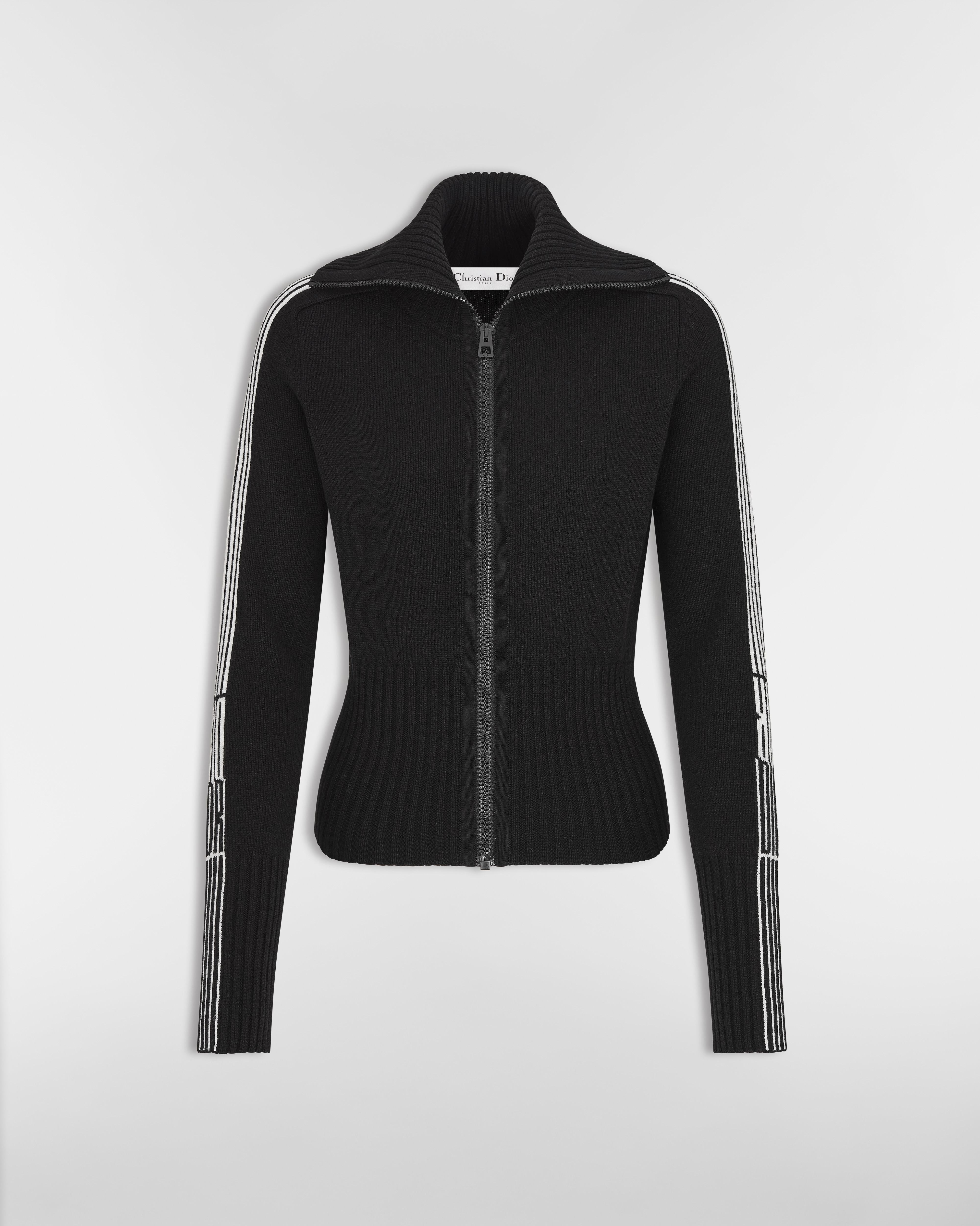 黑色绵羊毛和山羊绒混纺针织面料白色 Dior Graphique 图案