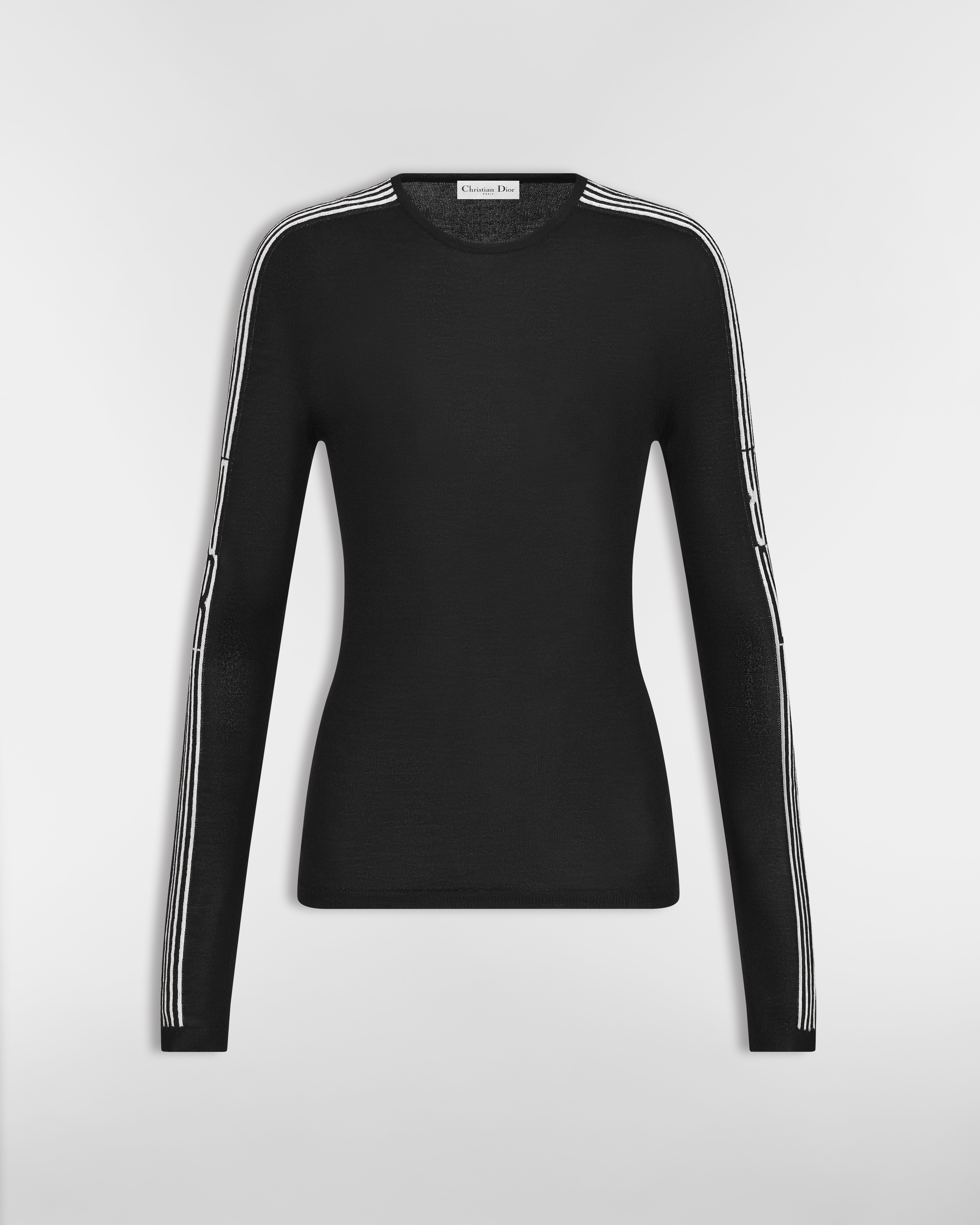 黑色山羊绒和桑蚕丝混纺针织面料白色 Dior Graphique 图案