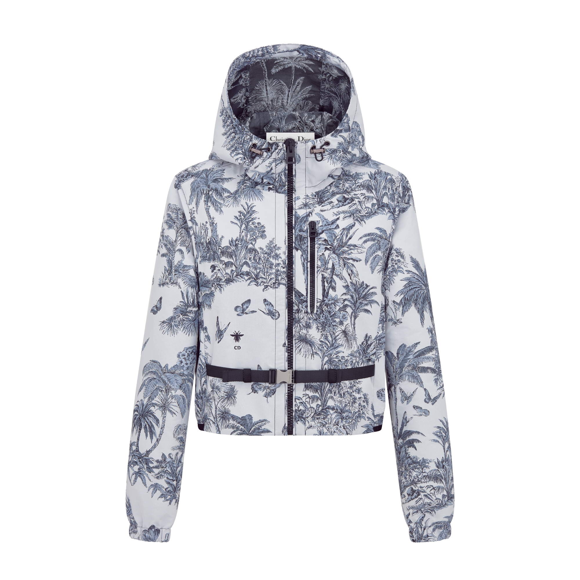 白色和蓝色塔夫绸提花科技面料 Palms 茹伊印花